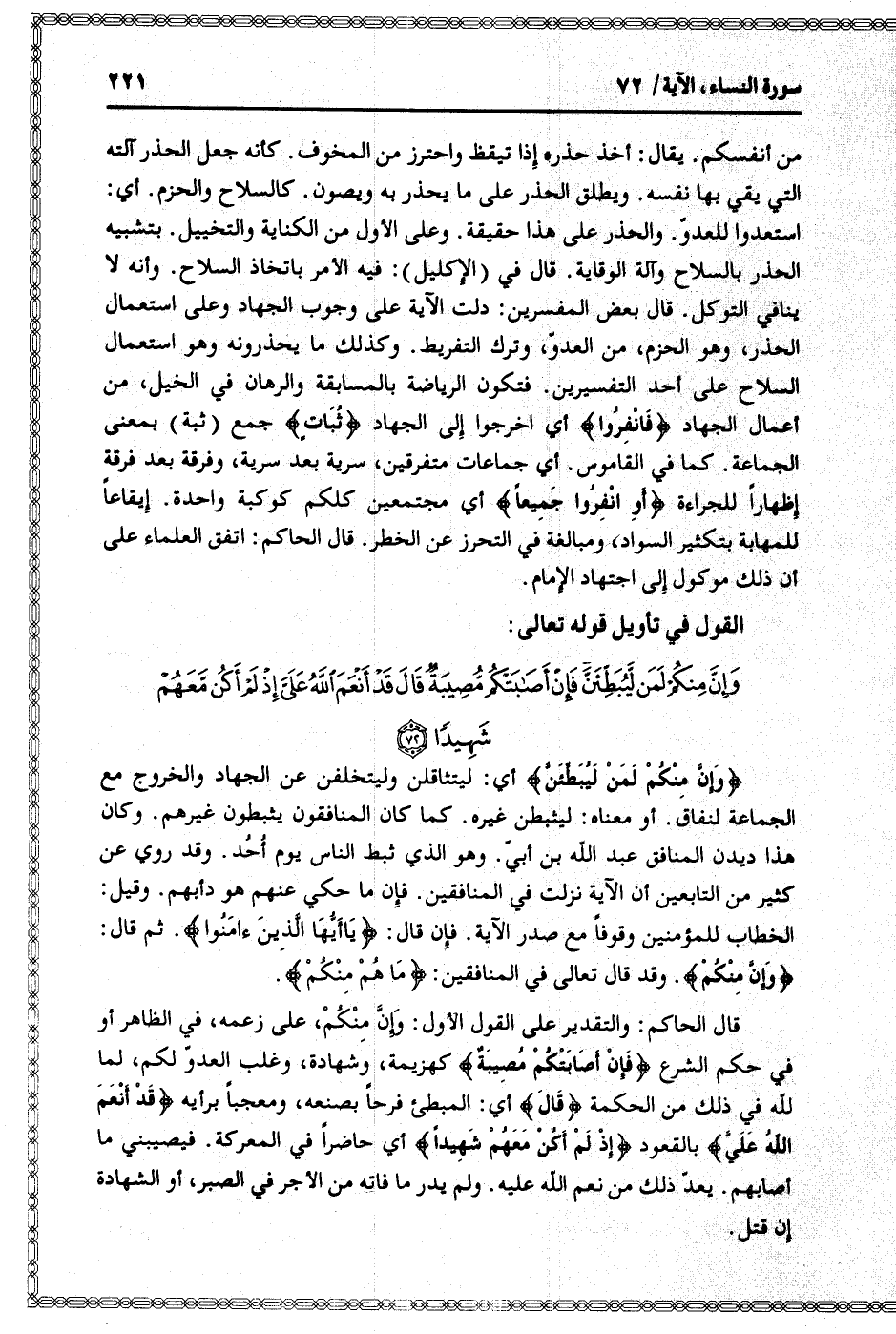 القول في تأويل قوله تعالى: [سورة النساء (4) : آية 72]