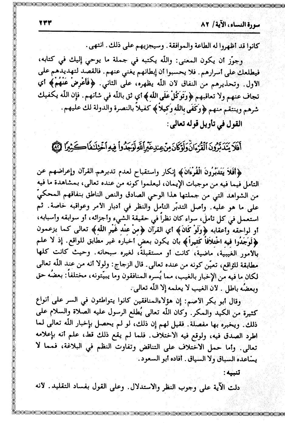 القول في تأويل قوله تعالى: [سورة النساء (4) : آية 82]