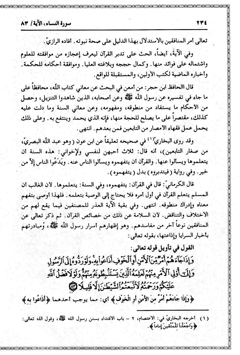 القول في تأويل قوله تعالى: [سورة النساء (4) : آية 83]
