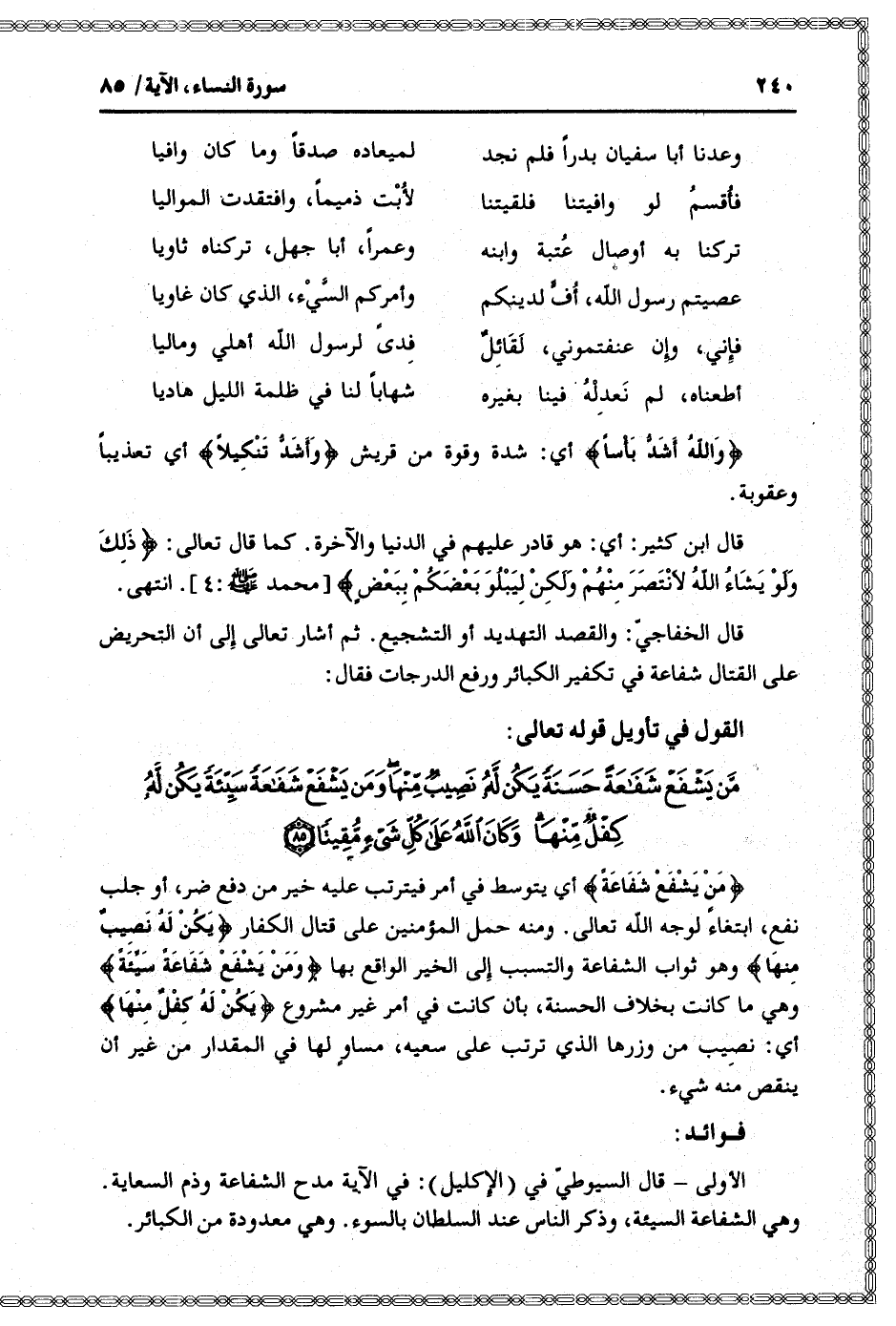القول في تأويل قوله تعالى: [سورة النساء (4) : آية 85]