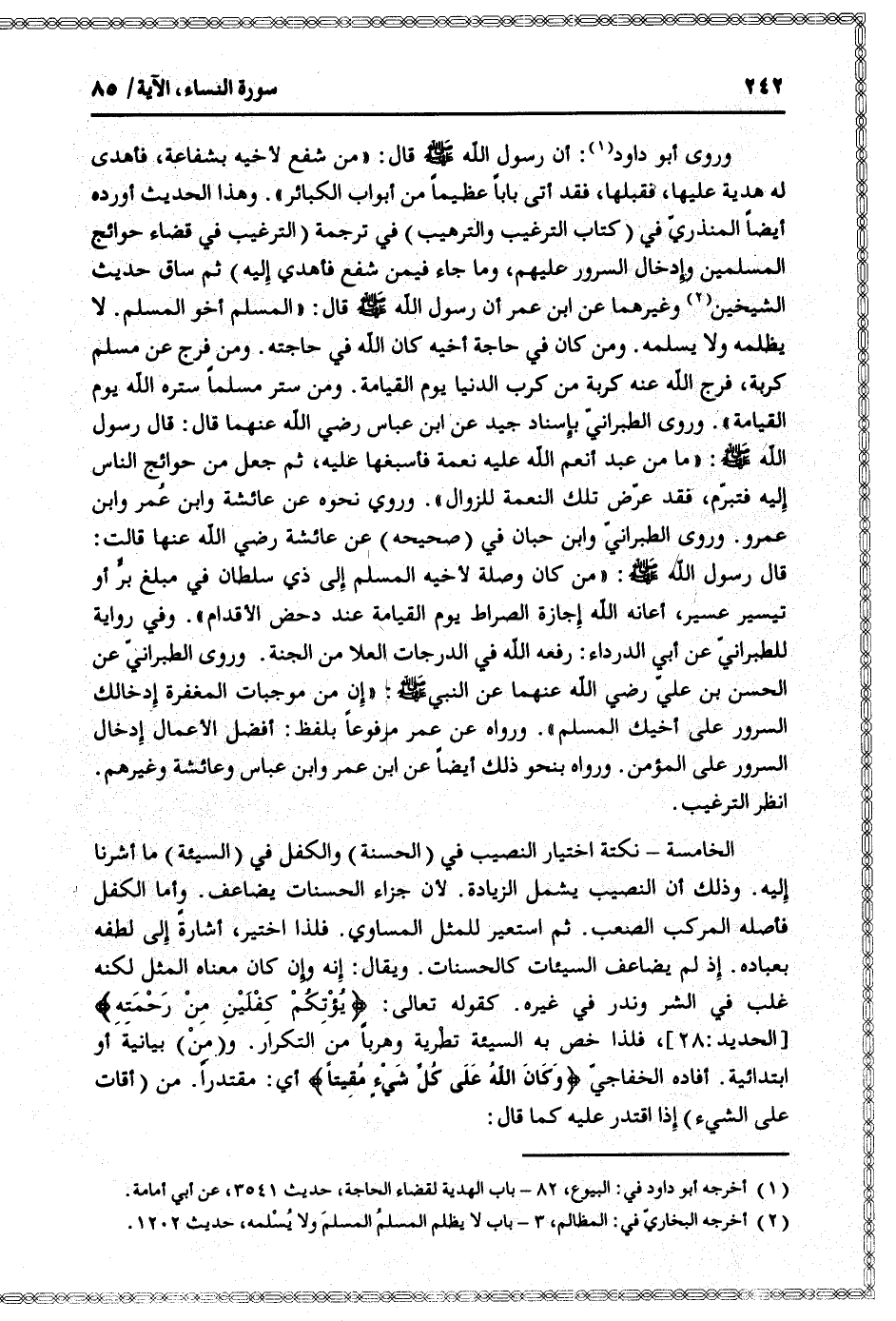(2) أخرجه البخاريّ في: المظالم، 3- باب لا يظلم المسلم المسلم ولا يسلمه، حديث 1202.