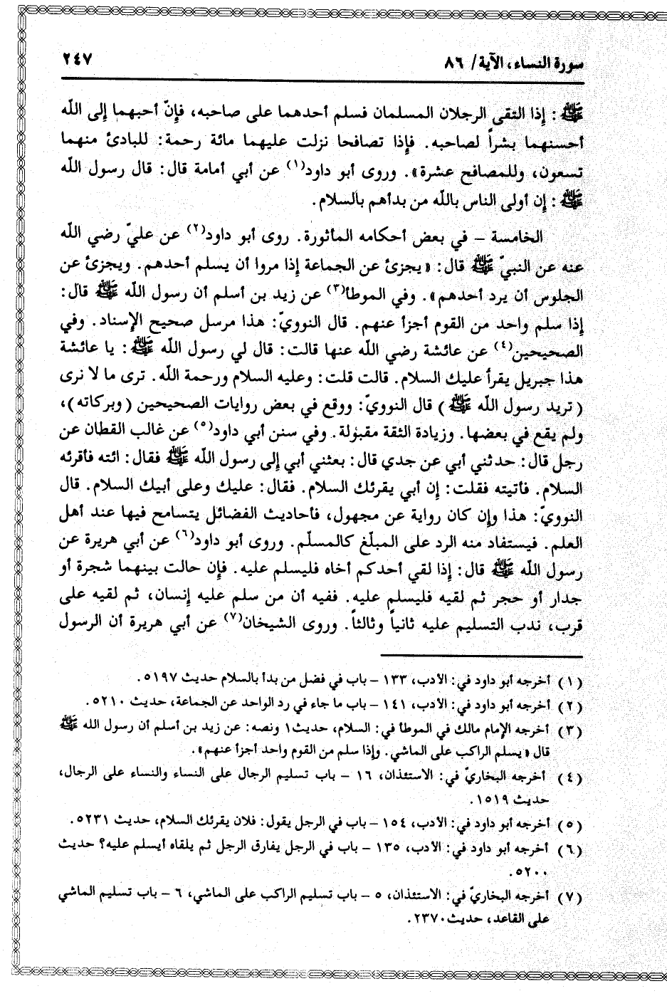 (5) أخرجه أبو داود في: الأدب، 154- باب في الرجل يقول: فلان يقرئك السلام، حديث 5231.