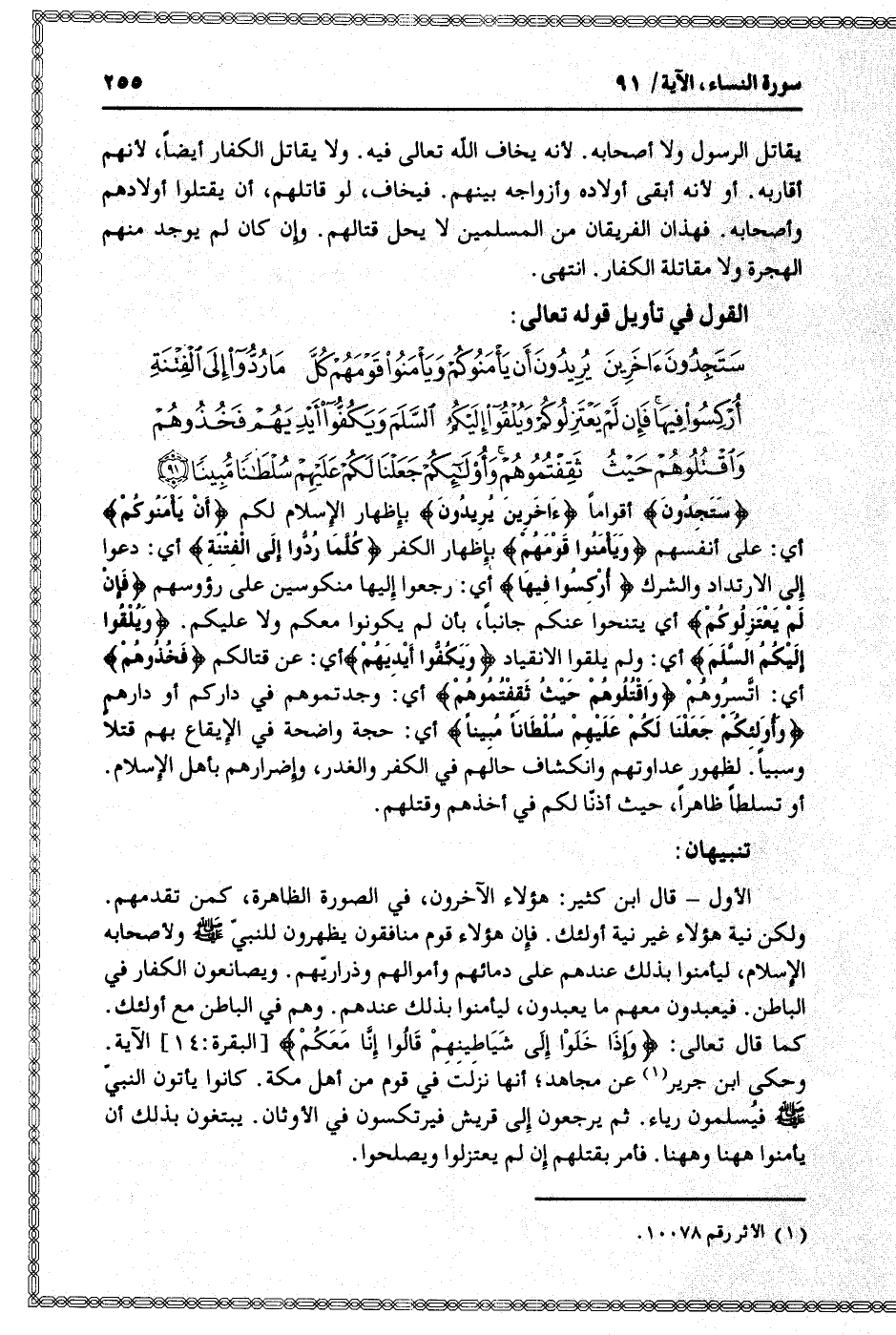 القول في تأويل قوله تعالى: [سورة النساء (4) : آية 91]