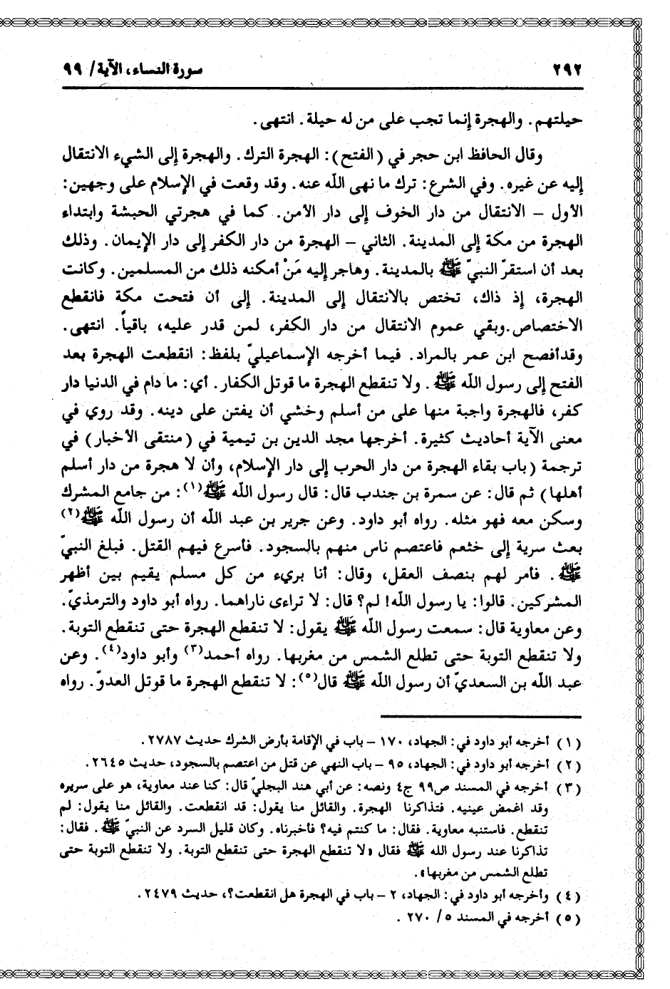 وعن عبد الله بن السعديّ أن رسول الله صلى الله عليه وسلم قال «5» : لا تنقطع الهجرة ما قوتل العدوّ. رواه