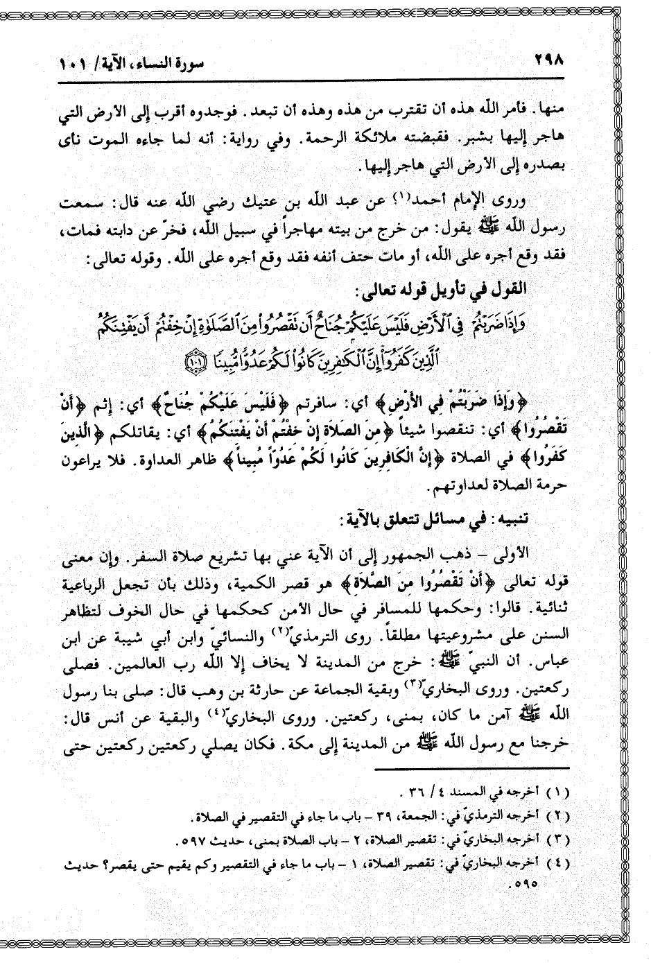 (4) أخرجه البخاريّ في: تقصير الصلاة، 1- باب ما جاء في التقصير وكم يقيم حتى يقصر؟ حديث 595.