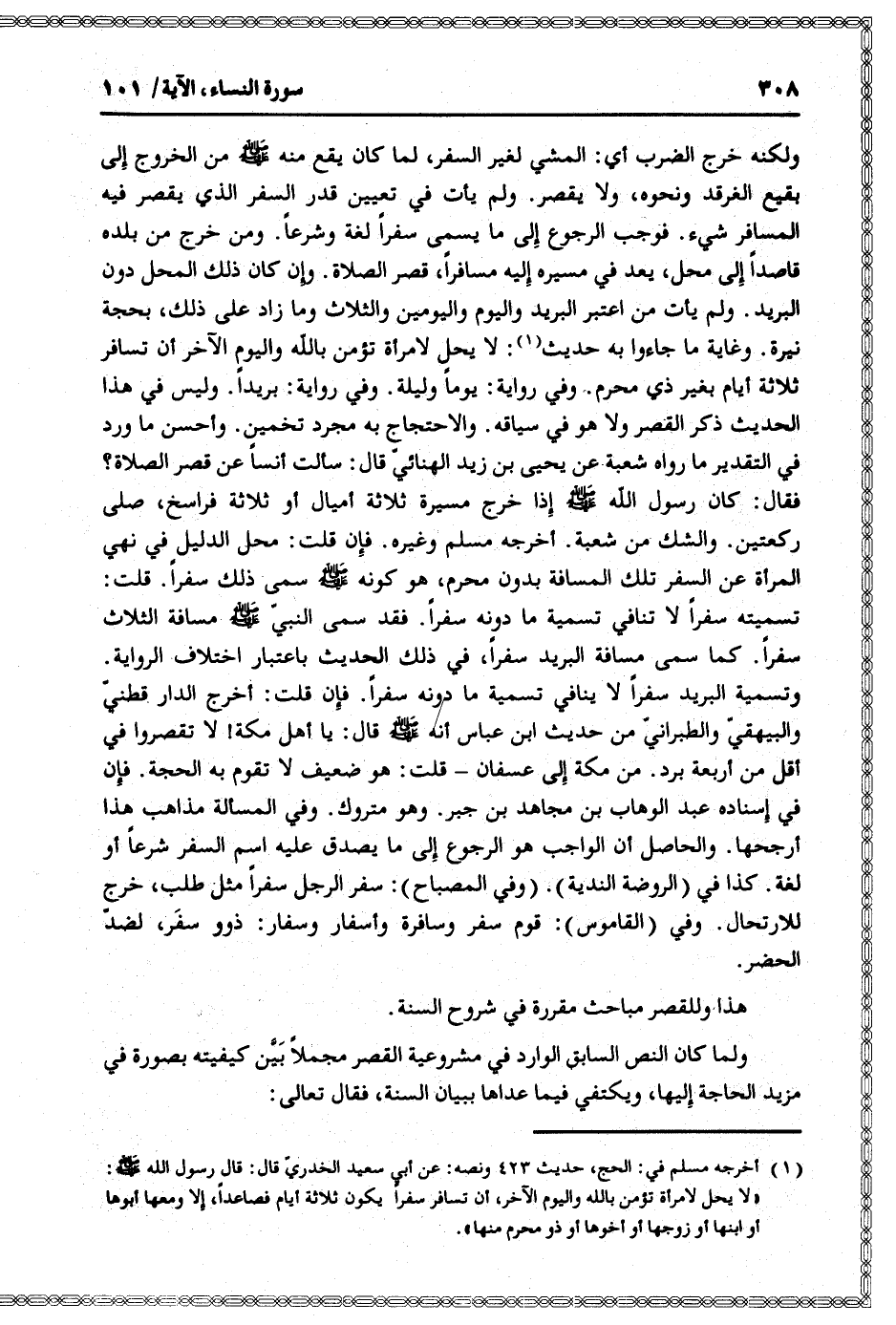 هذا وللقصر مباحث مقررة في شروح السنة.