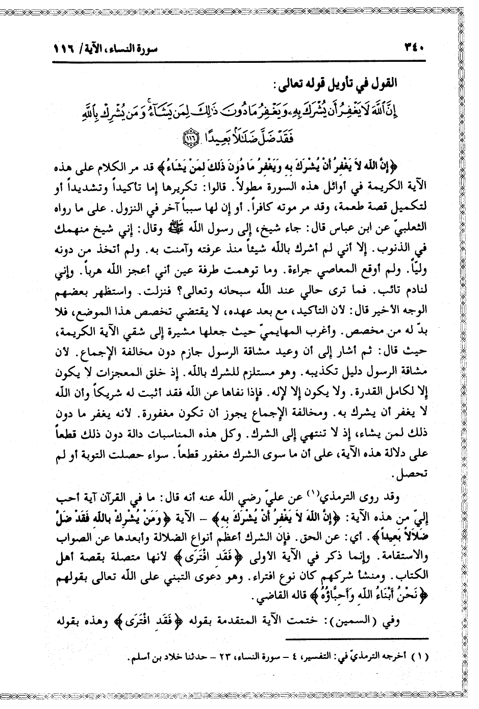 القول في تأويل قوله تعالى: [سورة النساء (4) : آية 116]