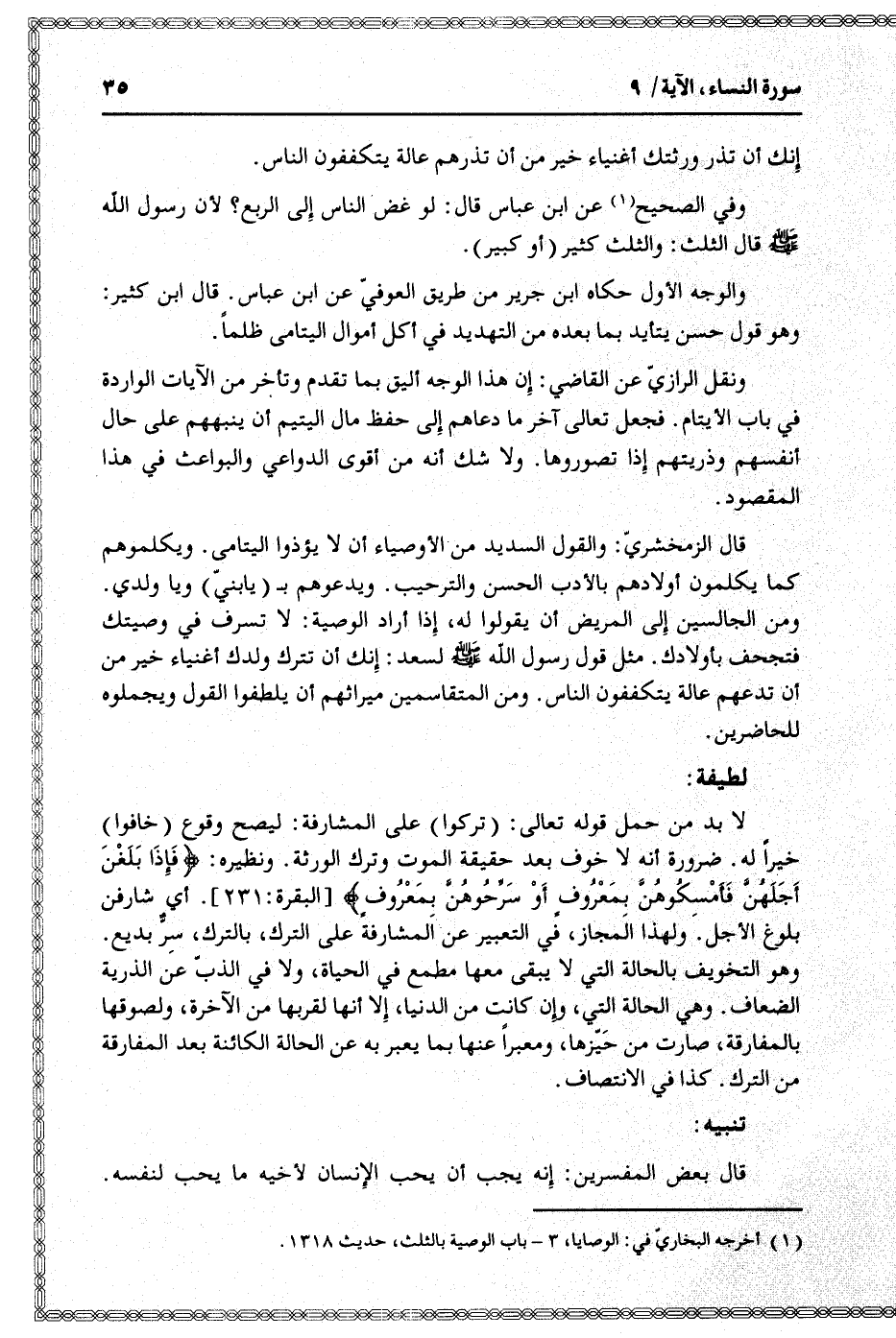 (1) أخرجه البخاريّ في: الوصايا، 3- باب الوصية بالثلث، حديث 1318.