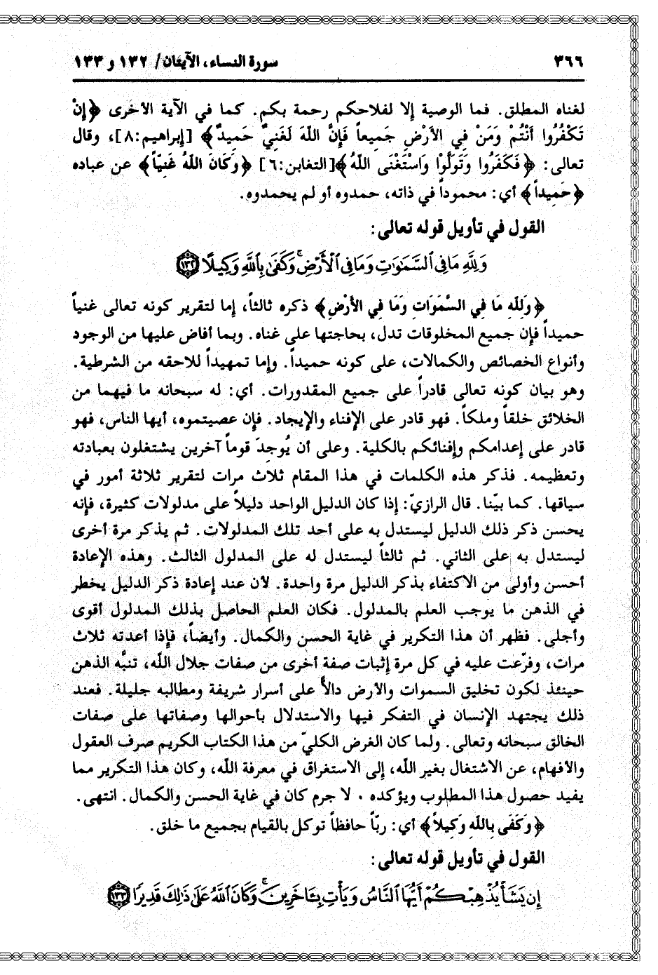 القول في تأويل قوله تعالى: [سورة النساء (4) : آية 133]