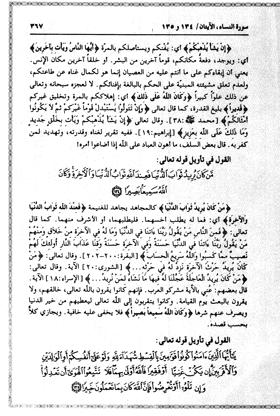 القول في تأويل قوله تعالى: [سورة النساء (4) : آية 134]