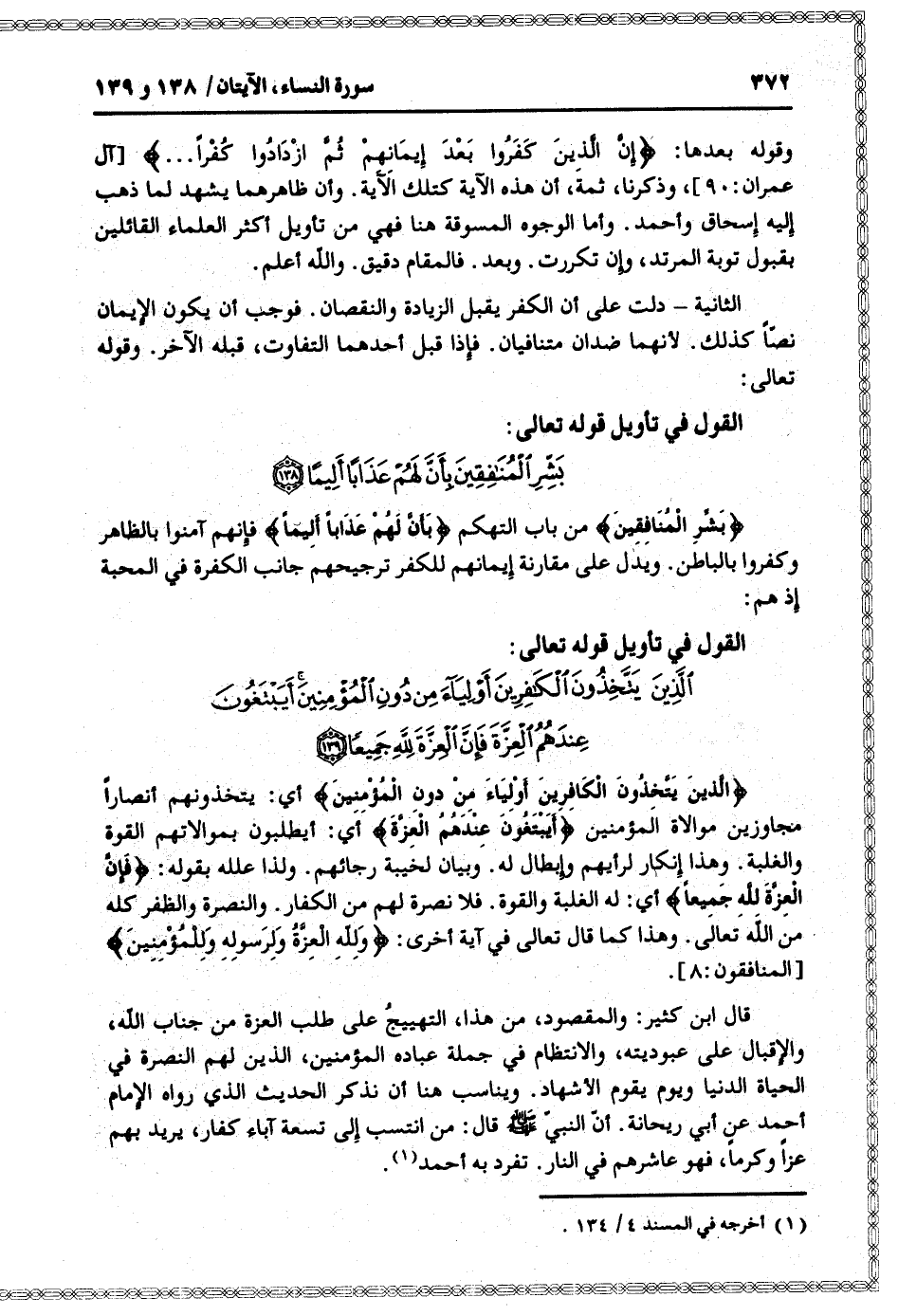 القول في تأويل قوله تعالى: [سورة النساء (4) : آية 139]
