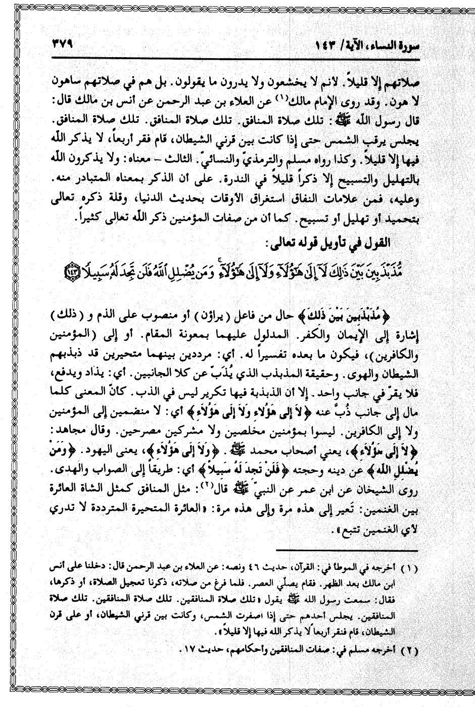 القول في تأويل قوله تعالى: [سورة النساء (4) : آية 143]