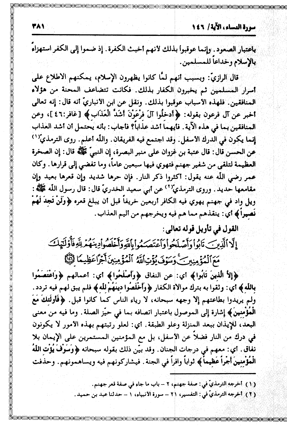 القول في تأويل قوله تعالى: [سورة النساء (4) : آية 146]