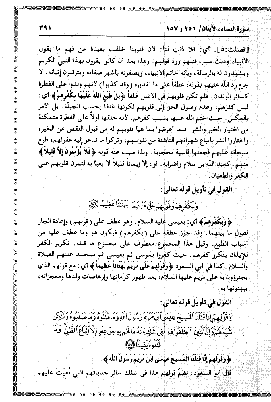القول في تأويل قوله تعالى: [سورة النساء (4) : آية 157]
