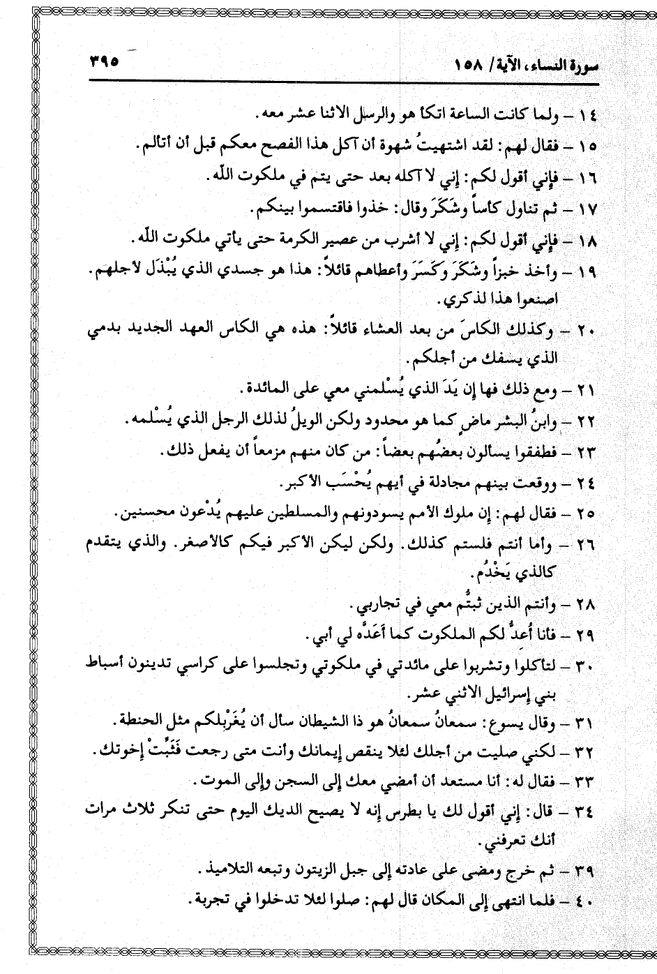 34- قال: إني أقول لك يا بطرس إنه لا يصيح الديك اليوم حتى تنكر ثلاث مرات أنك تعرفني.