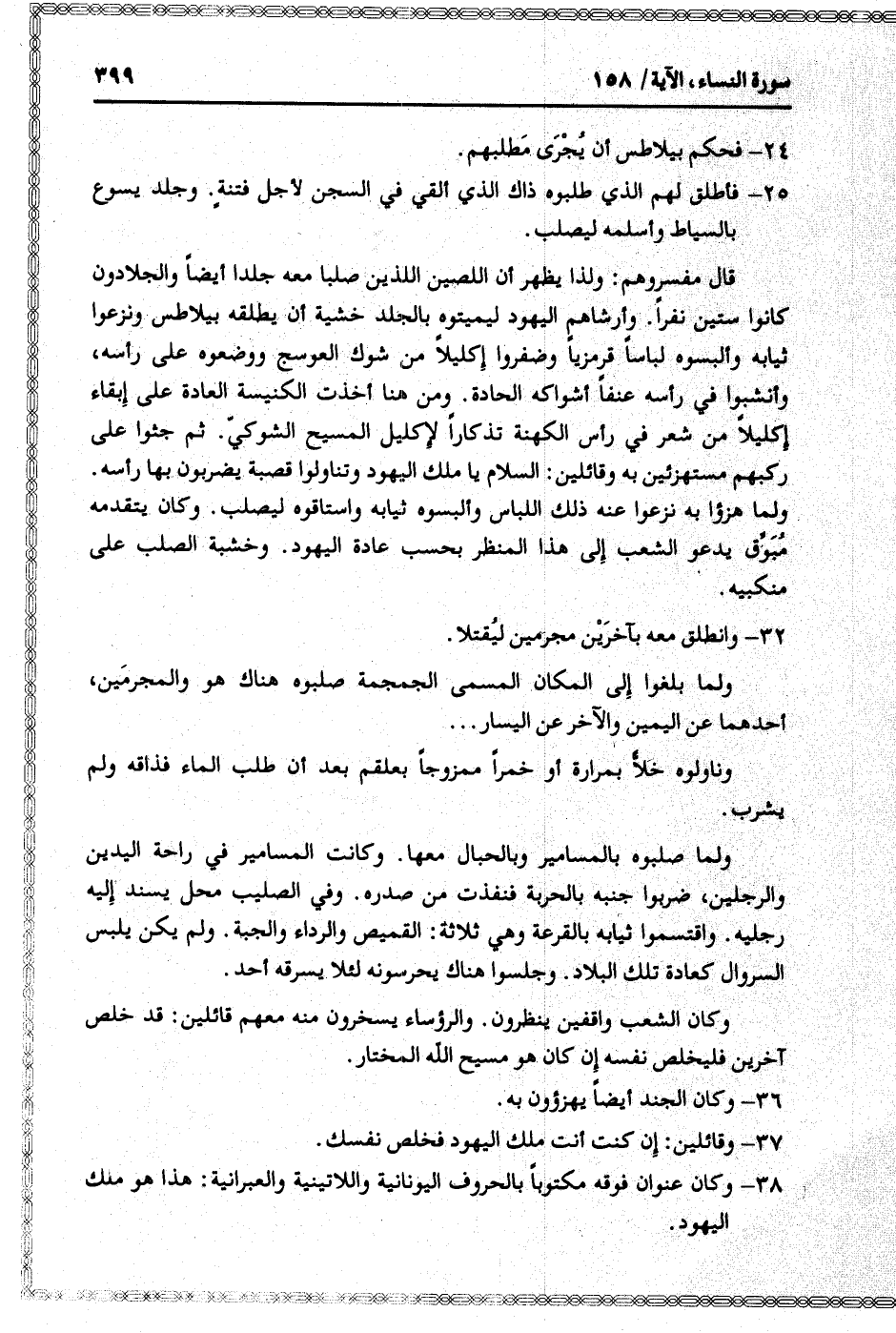 38- وكان عنوان فوقه مكتوبا بالحروف اليونانية واللاتينية والعبرانية: هذا هو ملك اليهود.