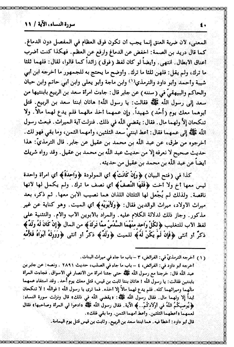 (1) أخرجه الترمذيّ في: الفرائض، 3- باب ما جاء في ميراث البنات.