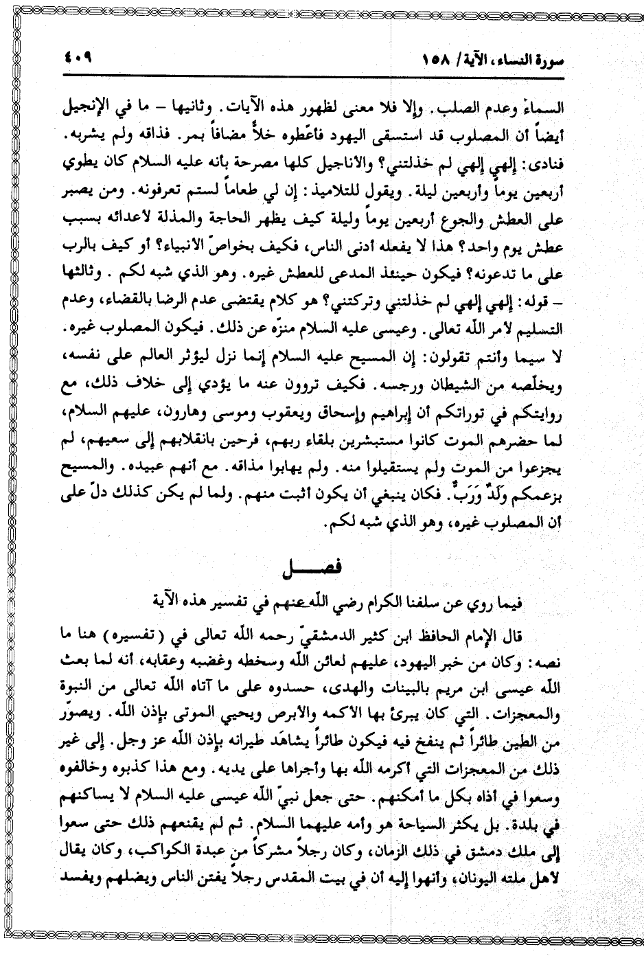 قال الإمام الحافظ ابن كثير الدمشقيّ رحمه الله تعالى في (تفسيره) هنا ما نصه: وكان من خبر اليهود، عليهم لعائن الله وسخطه وغضبه وعقابه، أنه لما بعث الله عيسى ابن مريم بالبينات والهدى، حسدوه على ما آتاه الله تعالى من النبوة والمعجزات. التي كان يبرئ بها الأكمه والأبرص ويحيي الموتى بإذن الله. ويصوّر من الطين طائرا ثم ينفخ فيه فيكون طائرا يشاهد طيرانه بإذن الله عز وجل. إلى غير ذلك من المعجزات التي أكرمه الله بها وأجراها على يديه. ومع هذا كذبوه وخالفوه وسعوا في أذاه بكل ما أمكنهم. حتى جعل نبيّ الله عيسى عليه السلام لا يساكنهم في بلدة. بل يكثر السياحة هو وأمه عليهما السلام. ثم لم يقنعهم ذلك حتى سعوا إلى ملك دمشق في ذلك الزمان، وكان رجلا مشركا من عبدة الكواكب، وكان يقال لأهل ملته اليونان، وأنهوا إليه أن في بيت المقدس رجلا يفتن الناس ويضلهم ويفسد