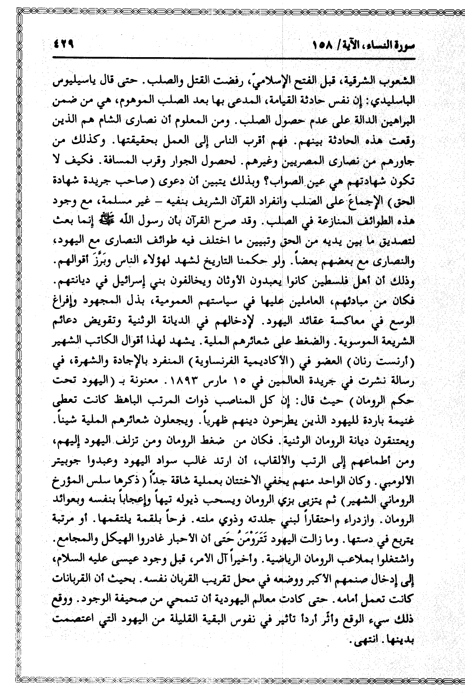 واشتغلوا بملاعب الرومان الرياضية. وأخيرا آل الأمر، قبل وجود عيسى عليه السلام، إلى إدخال صنمهم الأكبر ووضعه في محل تقريب القربان نفسه. بحيث أن القربانات كانت تعمل أمامه. حتى كادت معالم اليهودية أن تنمحي من صحيفة الوجود. ووقع ذلك سيء الوقع وأثّر أردأ تأثير في نفوس البقية القليلة من اليهود التي اعتصمت بدينها. انتهى.