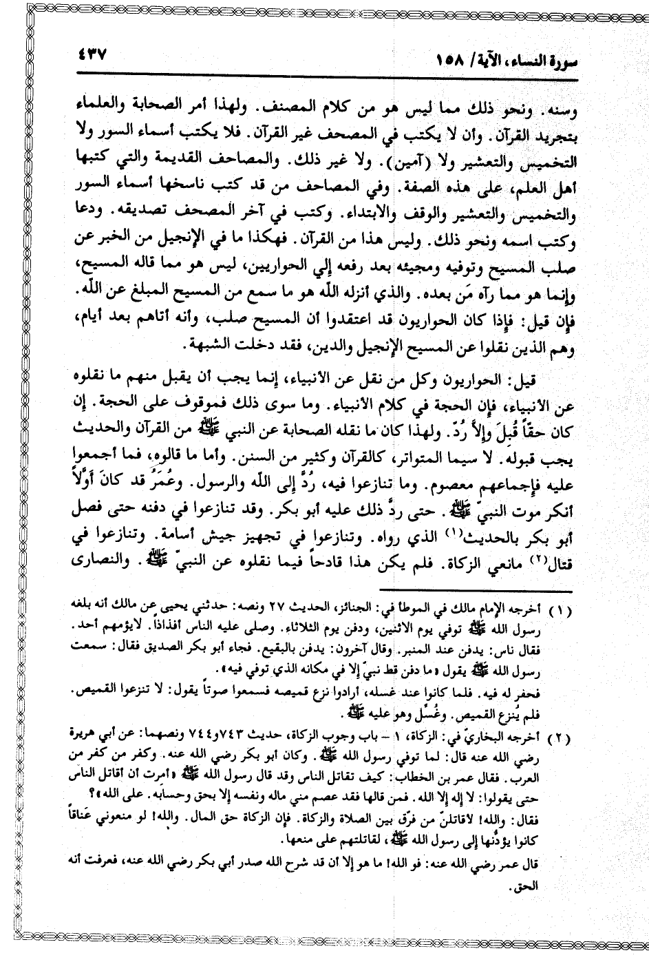 أخرجه البخاريّ في: الزكاة، 1- باب وجوب الزكاة، حديث 743 و 744 ونصهما: عن أبي هريرة رضي الله عنه قال: لما توفي رسول الله صلى الله عليه وسلم. وكان أبو بكر رضي الله عنه. وكفر من كفر من العرب. فقال عمر بن الخطاب: كيف تقاتل الناس وقد قال رسول الله صلى الله عليه وسلم «أمرت أن أقاتل الناس حتى يقولوا: لا إله إلا الله. فمن قالها فقد عصم مني ماله ونفسه إلا بحق وحسابه. على الله» ؟