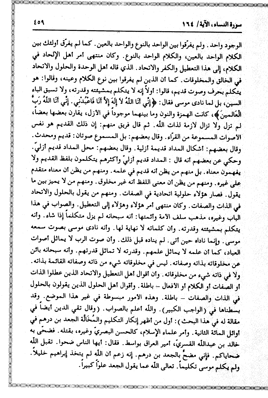 ولم يكلم موسى تكليما. تعالى الله عما يقول الجعد علوّا كبيرا.