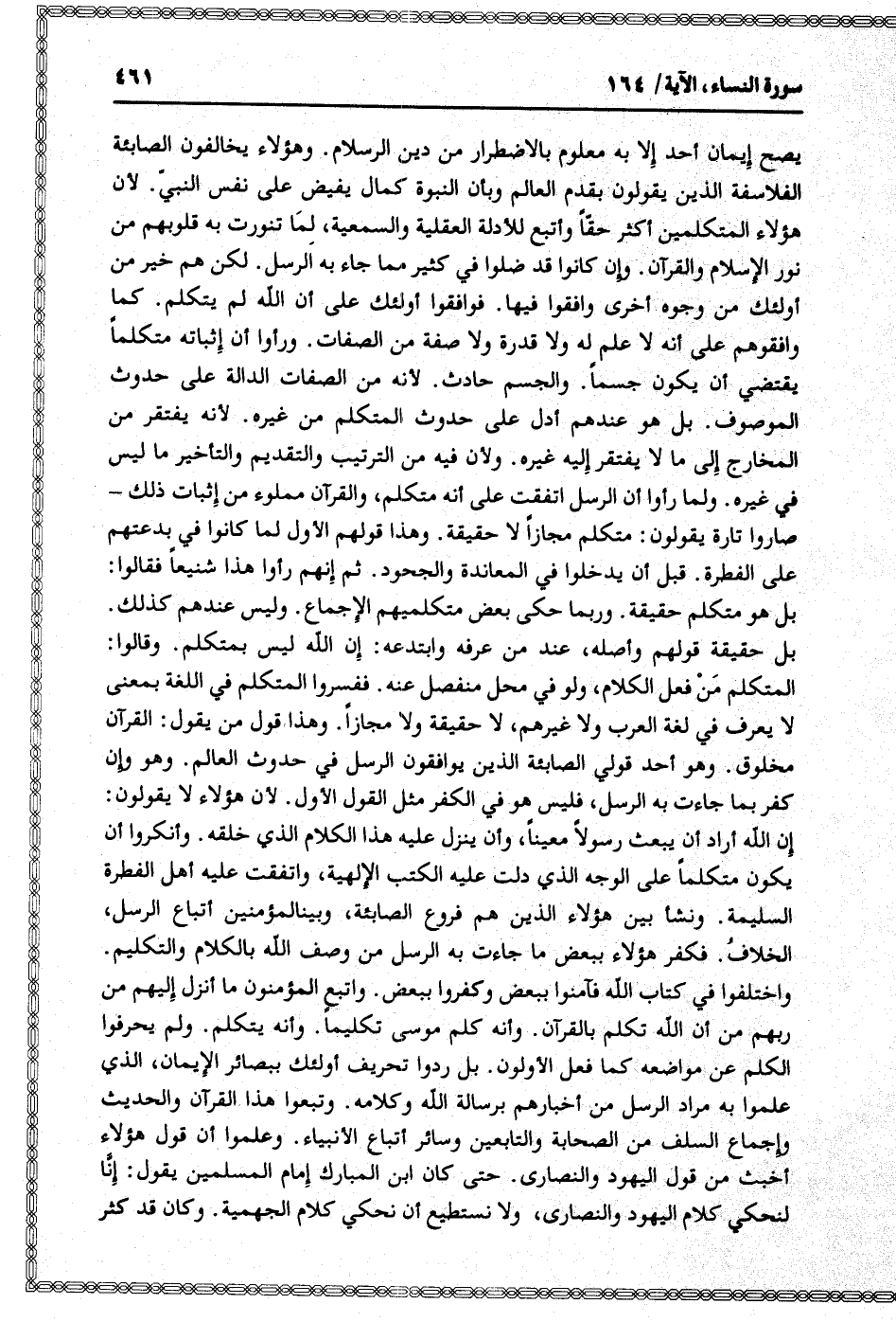 إن الله أراد أن يبعث رسولا معينا، وأن ينزل عليه هذا الكلام الذي خلقه. وأنكروا أن يكون متكلما على الوجه الذي دلت عليه الكتب الإلهية، واتفقت عليه أهل الفطرة السليمة. ونشأ بين هؤلاء الذين هم فروع الصابئة، وبينا لمؤمنين أتباع الرسل، الخلاف. فكفر هؤلاء ببعض ما جاءت به الرسل من وصف الله بالكلام والتكليم.