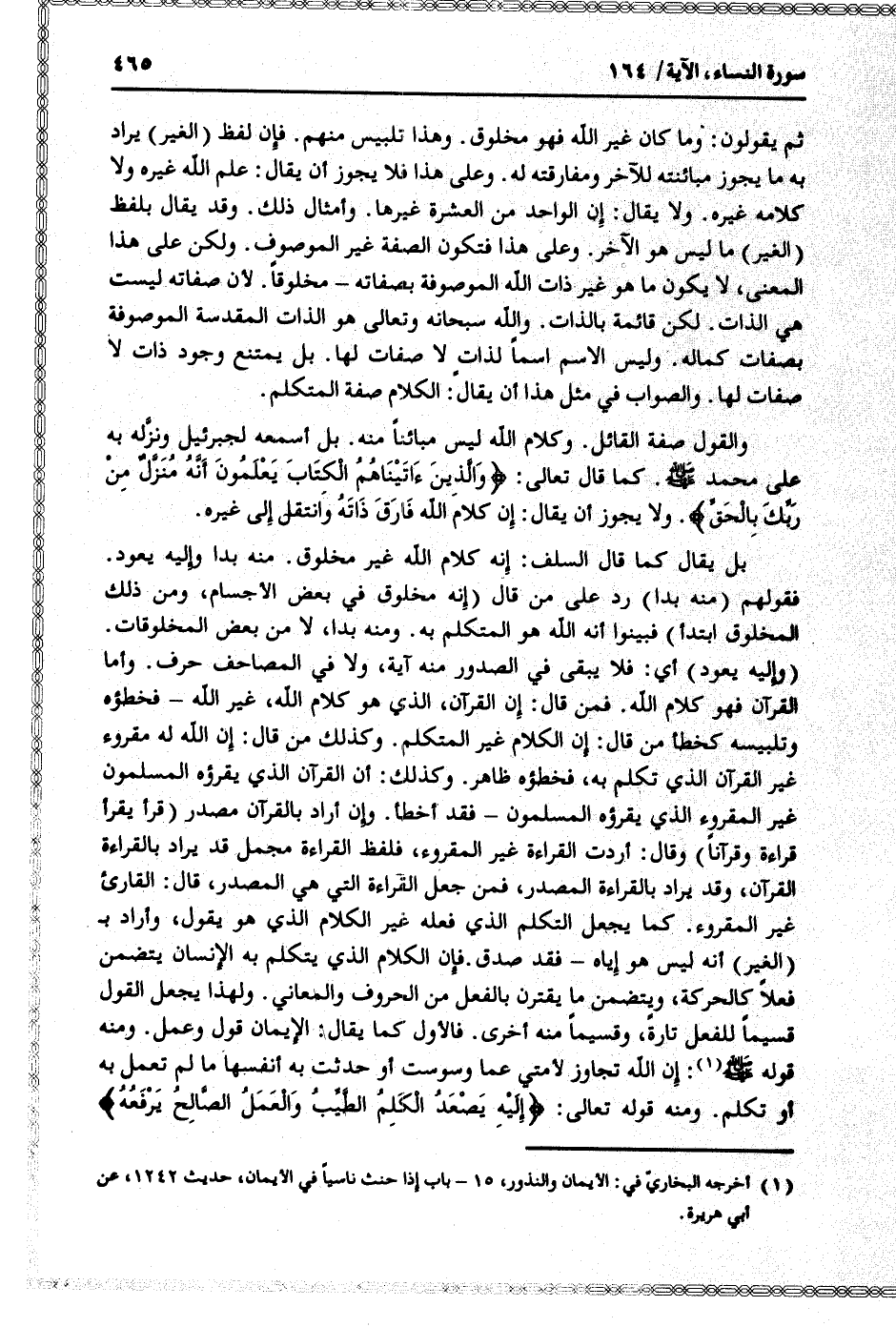والقول صفة القائل. وكلام الله ليس مبائنا منه. بل أسمعه لجبرئيل ونزّله به على محمد صلى الله عليه وسلم. كما قال تعالى: وَالَّذِينَ آتَيْناهُمُ الْكِتابَ يَعْلَمُونَ أَنَّهُ مُنَزَّلٌ مِنْ رَبِّكَ بِالْحَقِّ. ولا يجوز أن يقال: إن كلام الله فارق ذاته وانتقل إلى غيره.