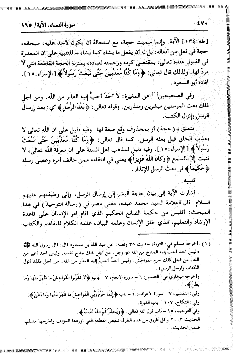 وأخرجه البخاريّ في: التفسير، 6- سورة الأنعام، 7- باب لا تَقْرَبُوا الْفَواحِشَ ما ظَهَرَ مِنْها وَما بَطَنَ.