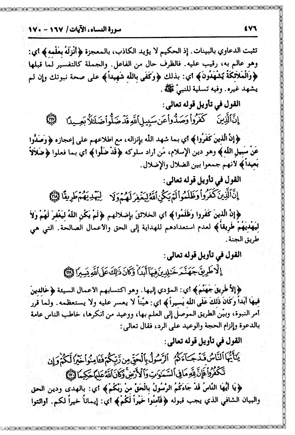 القول في تأويل قوله تعالى: [سورة النساء (4) : آية 168]