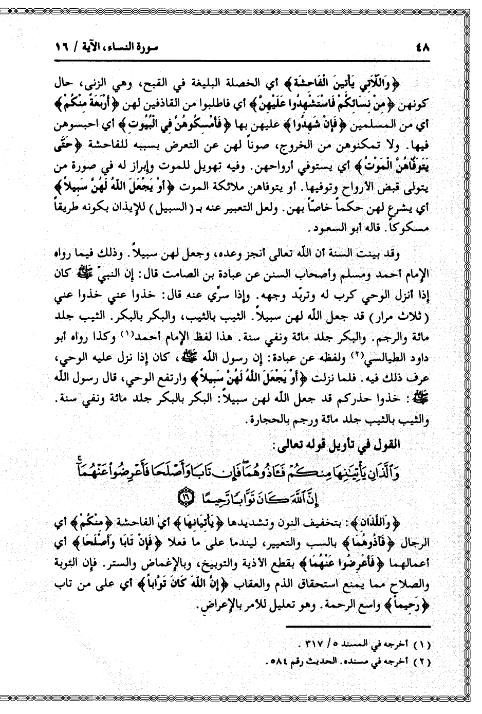 . القول في تأويل قوله تعالى: [سورة النساء (4) : آية 16]