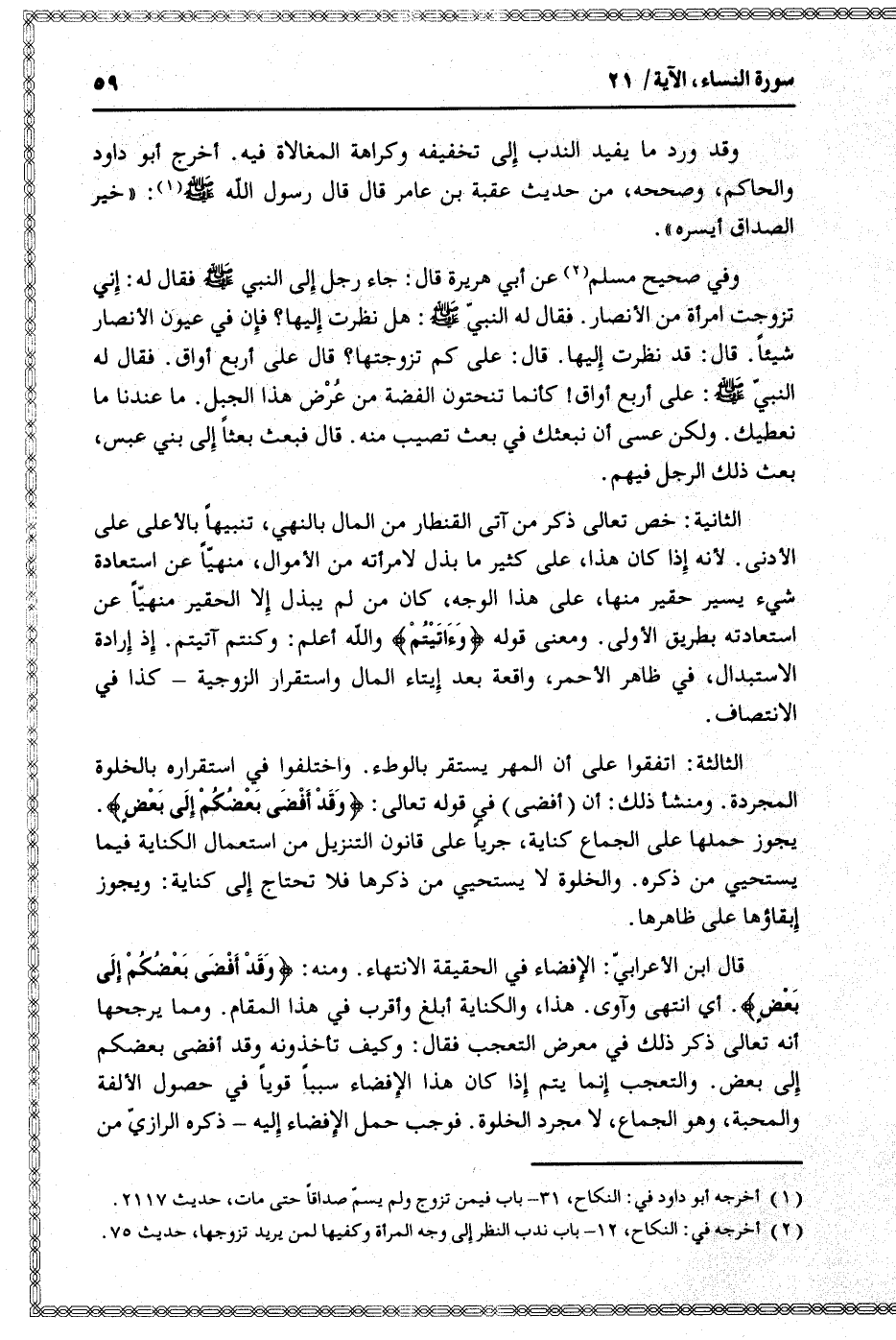 (1) أخرجه أبو داود في: النكاح، 31- باب فيمن تزوج ولم يسمّ صداقا حتى مات، حديث 2117.
