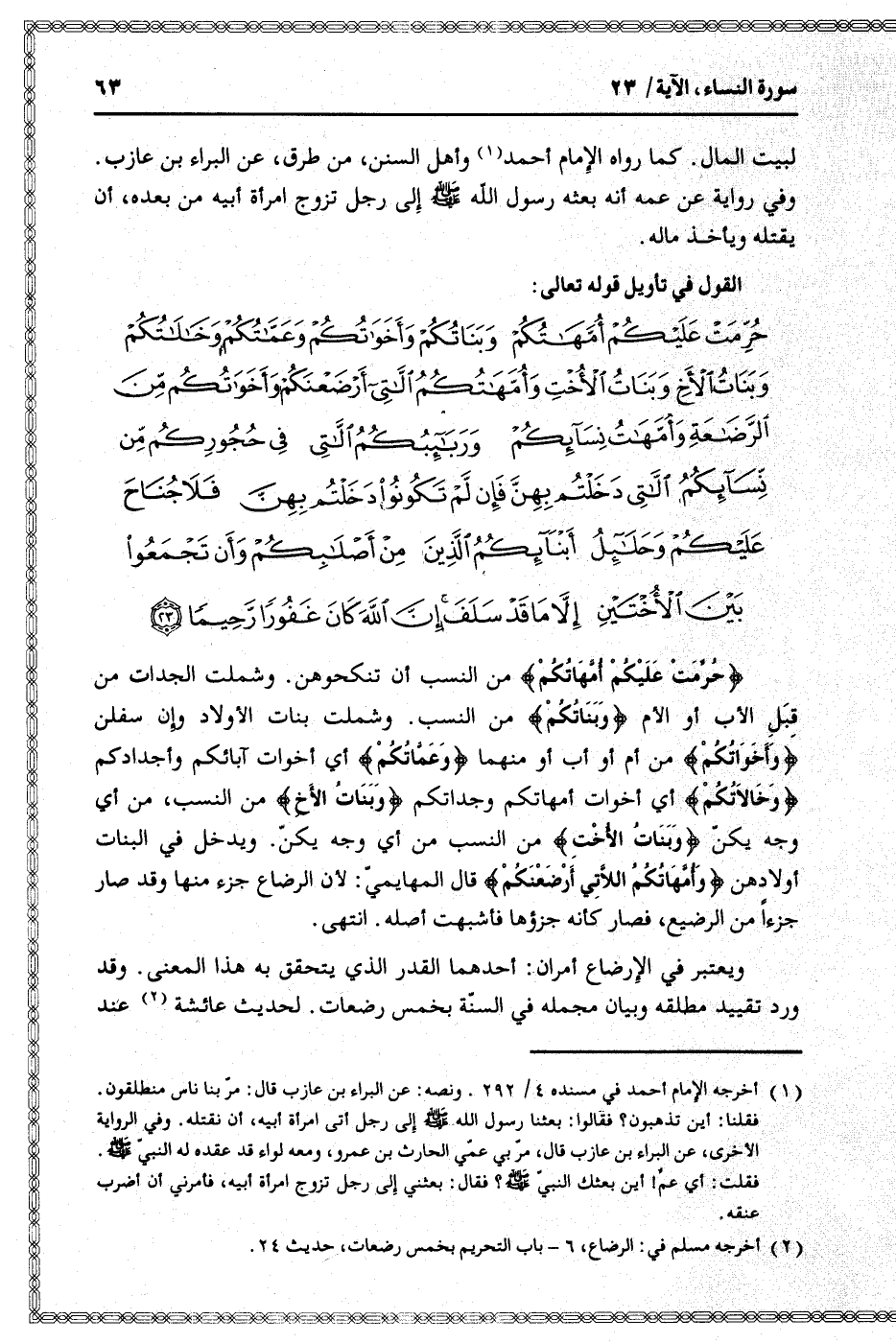 القول في تأويل قوله تعالى: [سورة النساء (4) : آية 23]