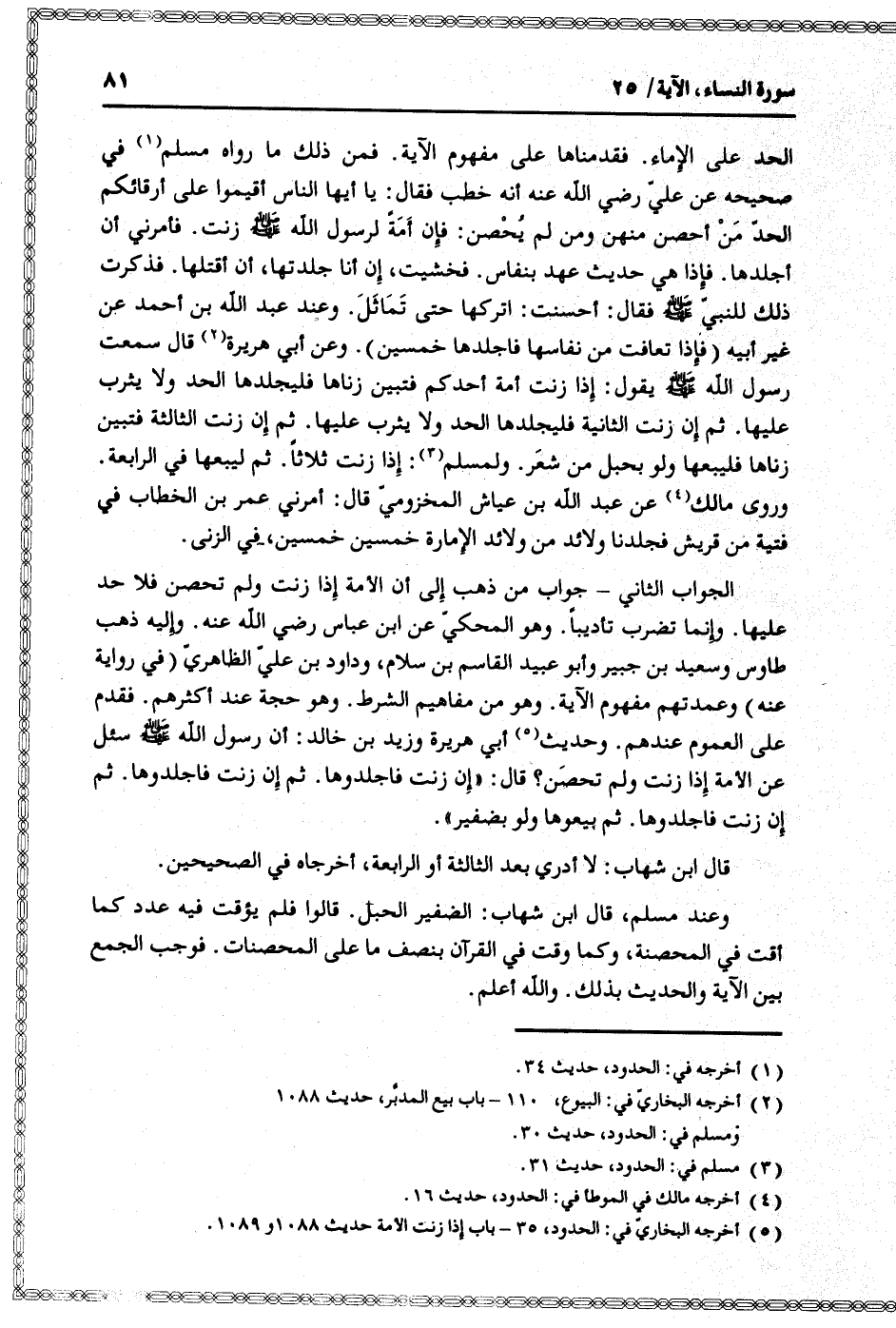 (5) أخرجه البخاريّ في: الحدود، 35- باب إذا زنت الأمة حديث 1088 و 1089.