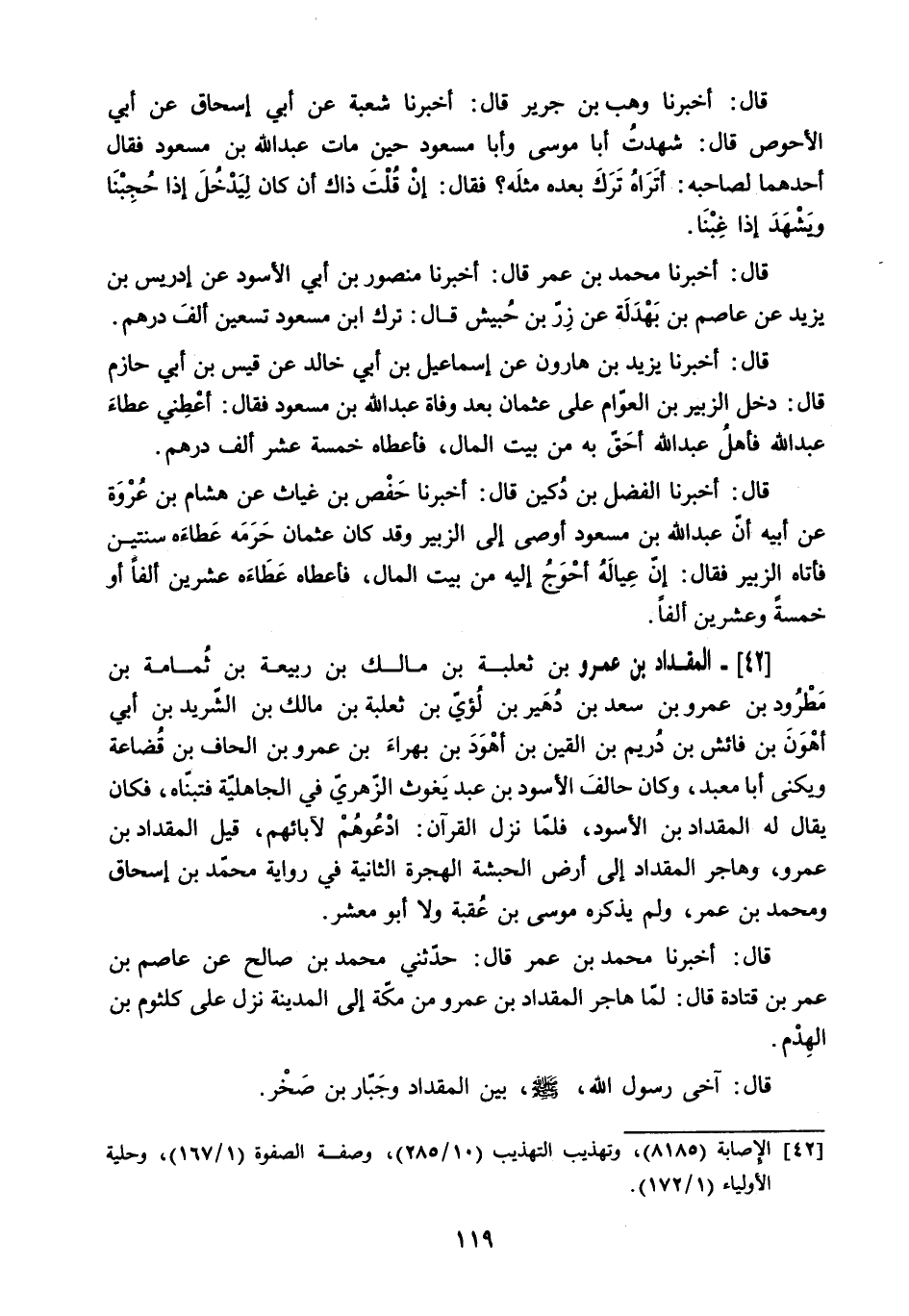 42 الإصابة (8185) ، وتهذيب التهذيب (10/ 285) ، وصفة الصفوة (1/ 167) ، وحلية الأولياء (1/ 172) .