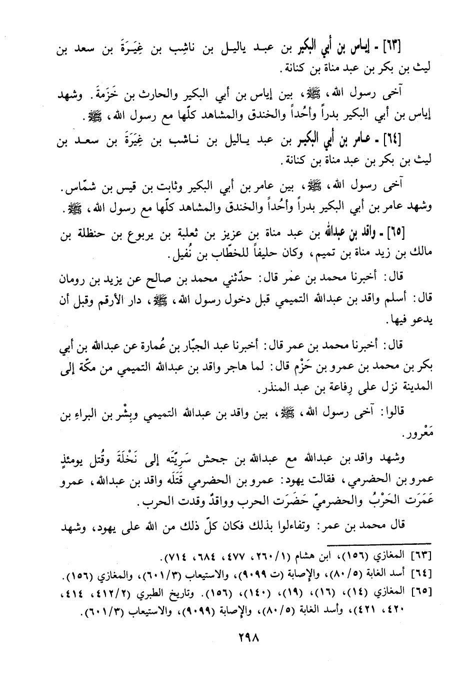 65 المغازي (14) ، (16) ، (19) ، (140) ، (156) . وتاريخ الطبري (2/ 412، 414، 420، 421) ، وأسد الغابة (5/ 80) ، والإصابة (9099) ، والاستيعاب (3/ 601) .