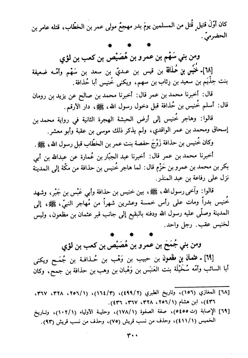 69 الإصابة (ت 5455) ، صفة الصفوة (1/ 178) ، وحلية الأولياء (1/ 102) ، وتاريخ الخميس (1/ 411) ، وحذف من نسب قريش (75) ، وحذف من نسب قريش (93) .