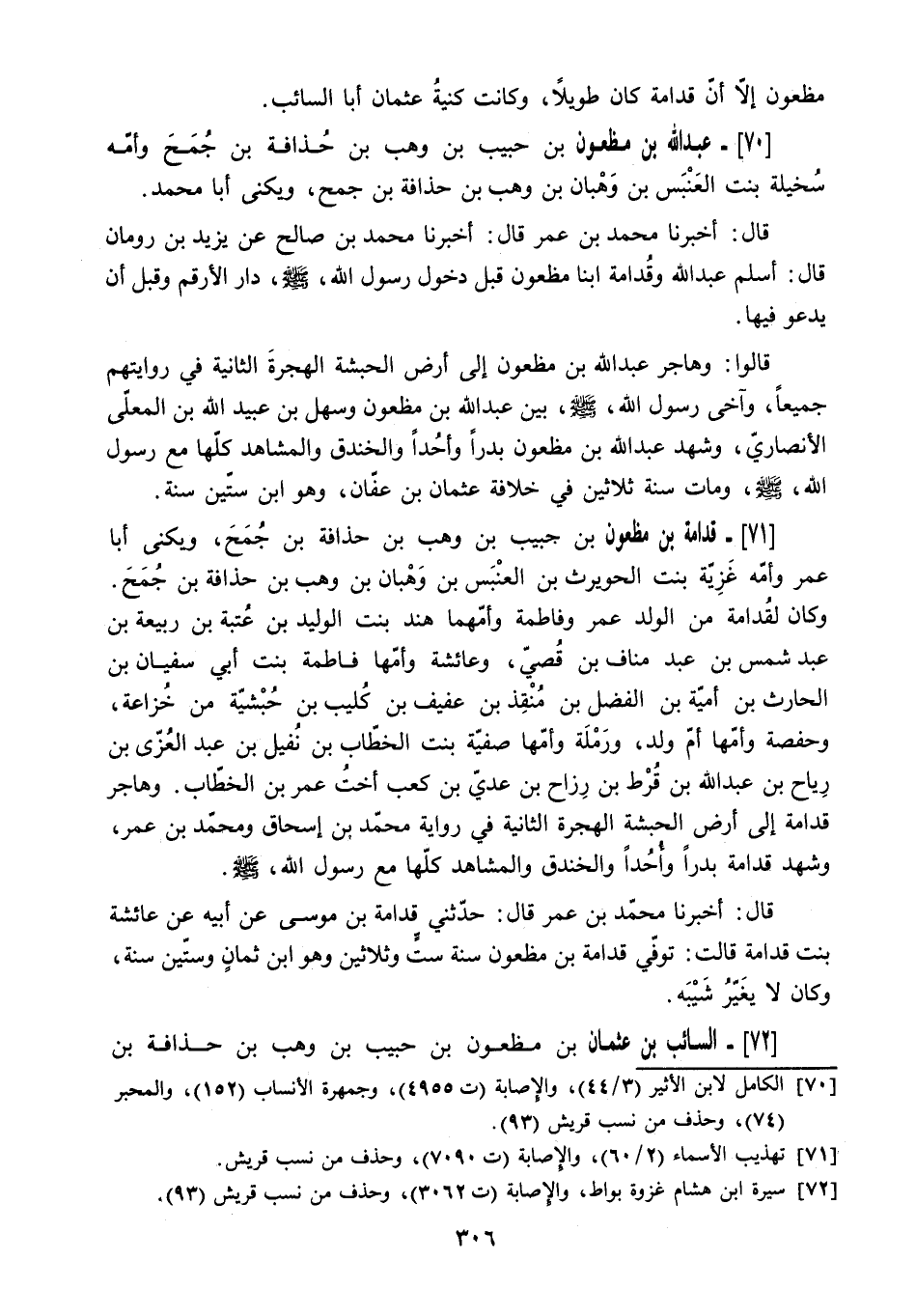 70- عَبْدُ اللَّهِ بْنُ مظعون بن حبيب بن وهب بن حذافة بْنِ جمح وأمه سخيلة بِنْت العنبس بْن وهبان بن وهب بن حذافة بن جمح.