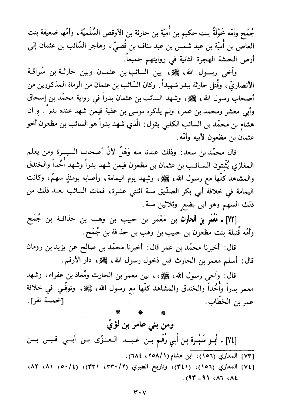 74 المغازي (156) ، (341) ، وتاريخ الطبري (2/ 330، 331) ، (4/ 50، 81، 82، 84، 86، 91- 93) .