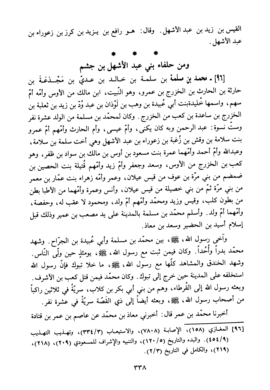 96 المغازي (158) ، الإصابة (7808) ، والاستيعاب (3/ 334) ، وتهذيب التهذيب (9/ 454) . والبدء والتاريخ (5/ 120) ، والتنبيه والإشراف للمسعودي (209) ، (218) ، (219) ، والكامل في التاريخ (3/ 2) .