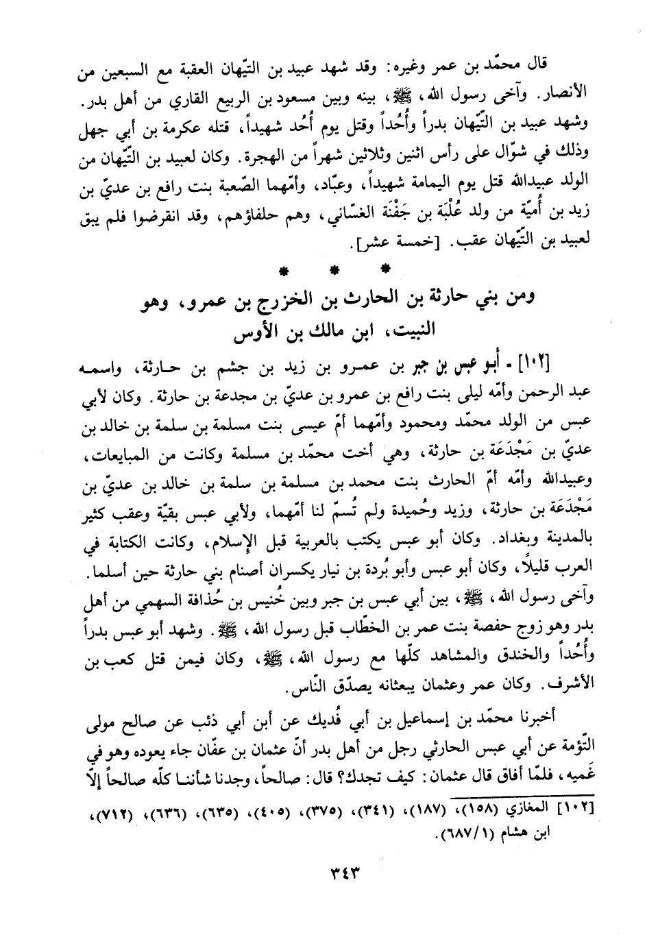 102 المغازي (158) ، (187) ، (341) ، (375) ، (405) ، (635) ، (636) ، (712) ، ابن هشام (1/ 687) .