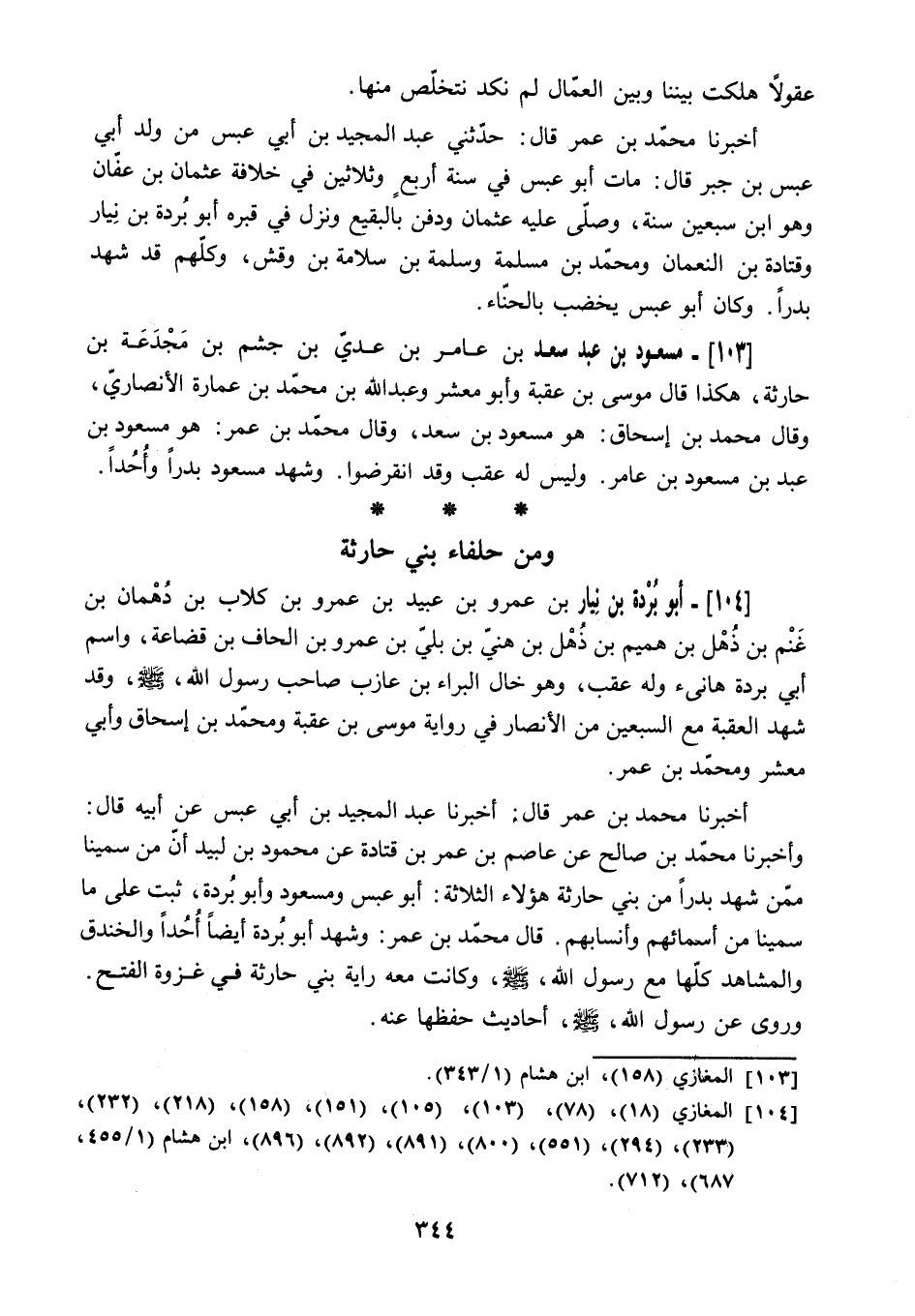 104 المغازي (18) ، (78) ، (103) ، (105) ، (151) ، (158) ، (218) ، (232) ، (233) ، (294) ، (551) ، (800) ، (891) ، (892) ، (896) ، ابن هشام (1/ 455، 687) ، (712) .