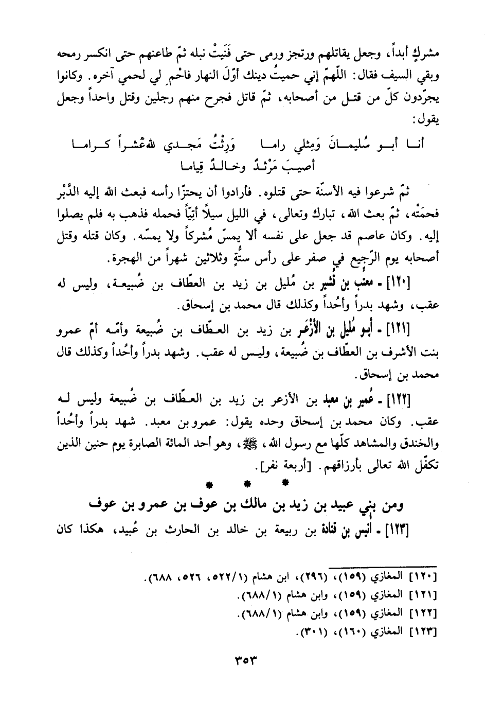 120 المغازي (159) ، (296) ، ابن هشام (1/ 522، 526، 688) .