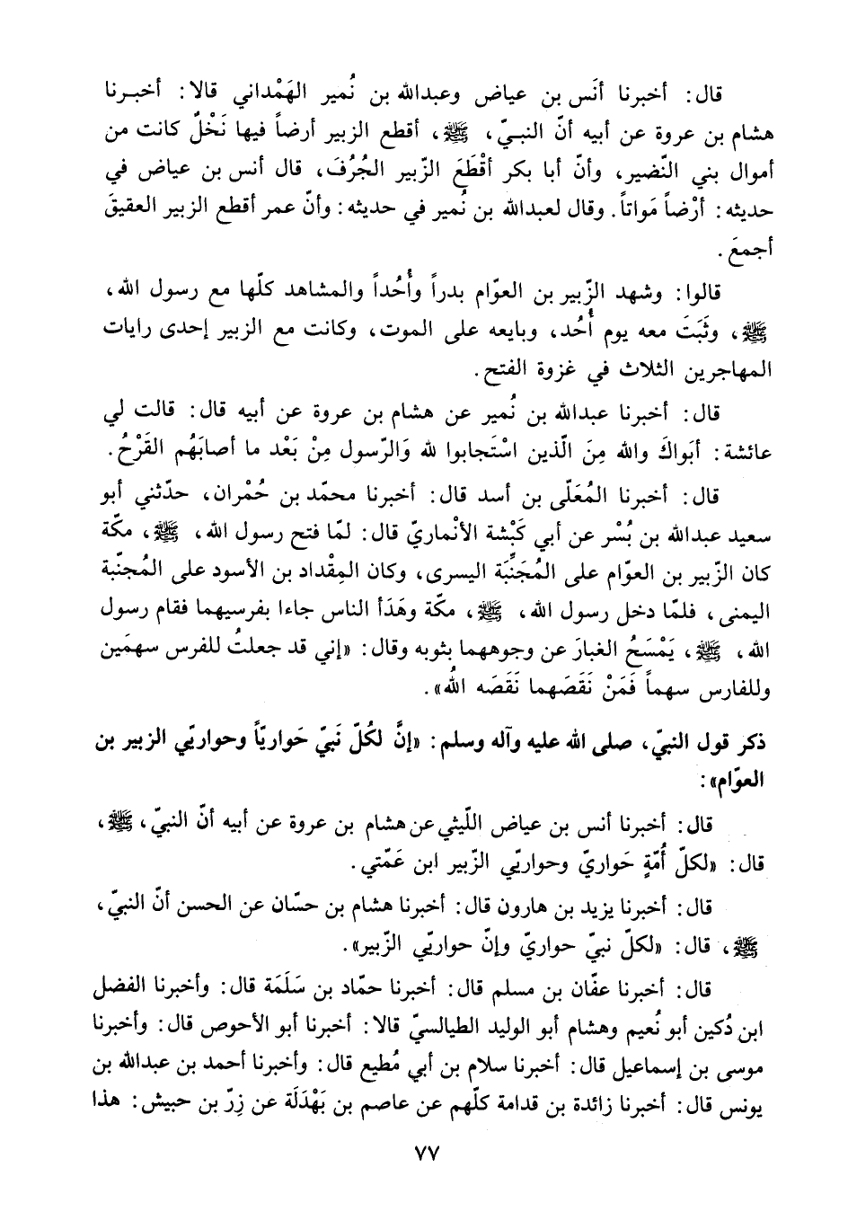 ذكر قول النبي. ص: إِنَّ لِكُلِّ نَبِيٍّ حَوَارِيًّا وحواريي الزُّبَيْر بْن الْعَوَّام: