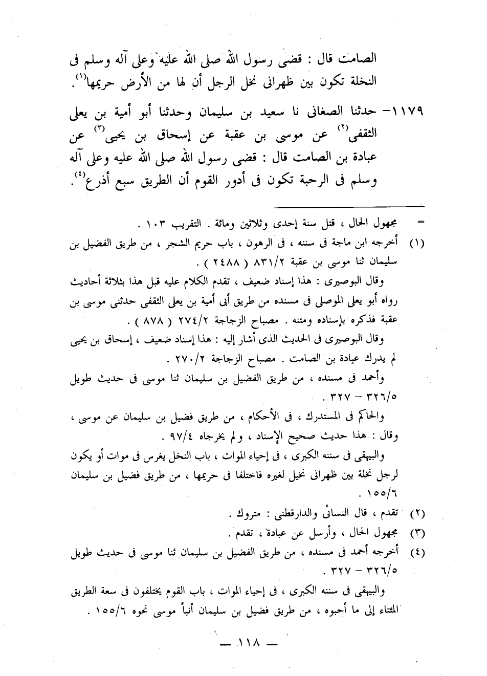 1179 - حَدَّثَنَا الصَّغَانِيُّ، نا سَعِيدُ بْنُ سُلَيْمَانَ، وَحَدَّثَنَا أَبُو أُمَيَّةَ بْنُ يَعْلَى الثَّقَفِيُّ، عَنْ مُوسَى بْنِ عُقْبَةَ، عَنْ إِسْحَاقَ بْنِ يَحْيَى، عَنْ عُبَادَةَ بْنِ الصَّامِتِ، قَالَ: قَضَى رَسُولُ اللَّهِ صَلَّى اللَّهُ عَلَيْهِ وَعَلَى آلِهِ وَسَلَّمَ فِي §الرَّحَبَةِ تَكُونُ فِي أَدْوُرِ الْقَوْمِ أَنَّ الطَّرِيقَ سَبْعَ أَذْرُعٍ