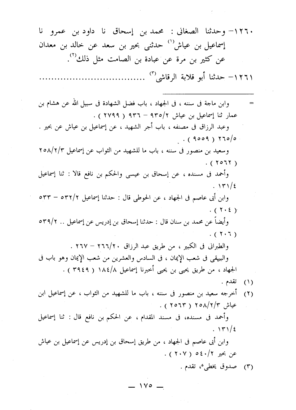 1261 - حَدَّثَنَا أَبُو قِلَابَةَ الرَّقَاشِيُّ -[176]-. . . . . . . . نا ابْنُ الْحِمَّانِيِّ، نا أَبُو الْمُحَيَّاةِ يَحْيَى بْنُ يَعْلَى , عَنْ زِيَادٍ الْمُصَفَّرِ، عَنِ الْحَسَنِ، عَنِ الْمِقْدَامِ الرَّهَاوِيِّ، قَالَ: جَلَسْنَا إِلَى عُبَادَةَ بْنِ الصَّامِتِ فَقُلْنَا: حَدِّثْنَا بِحَدِيثِ رَسُولِ اللَّهِ صَلَّى اللَّهُ عَلَيْهِ وَعَلَى آلِهِ وَسَلَّمَ فِي غَزْوَةِ كَذَا وَكَذَا قَالَ: صَلَّى بِنَا النَّبِيُّ صَلَّى اللَّهُ عَلَيْهِ وَعَلَى آلِهِ وَسَلَّمَ إِلَى بَعِيرٍ مِنَ الْمَغْنَمِ ثُمَّ أَخَذَ وَبَرَةً مِنَ الْفَيْءِ فَقَالَ: «مَا لِي مِنْهُ مِثْلُ هَذِهِ إِلَّا الْخُمُسُ , وَالْخُمُسُ مَرْدُودٌ فِيكُمْ، §فَأَدُّوا الْخَيْطَ وَالْمَخِيطَ فَمَا فَوْقَ ذَلِكَ , فَإِنَّ الْغُلُولَ عَارٌ وَنَارٌ وَشَنَارٌ عَلَى صَاحِبِهِ يَوْمَ الْقِيَامَةِ، وَأَقِيمُوا حُدُودَ اللَّهِ فِي الْحَضَرِ وَالسَّفَرِ , وَجَاهِدُوا النَّاسَ فِي الْقَرِيبِ وَالْبَعِيدِ , وَلَا يَأْخُذْكُمْ فِي اللَّهِ لَوْمَةَ لَائِمٍ»