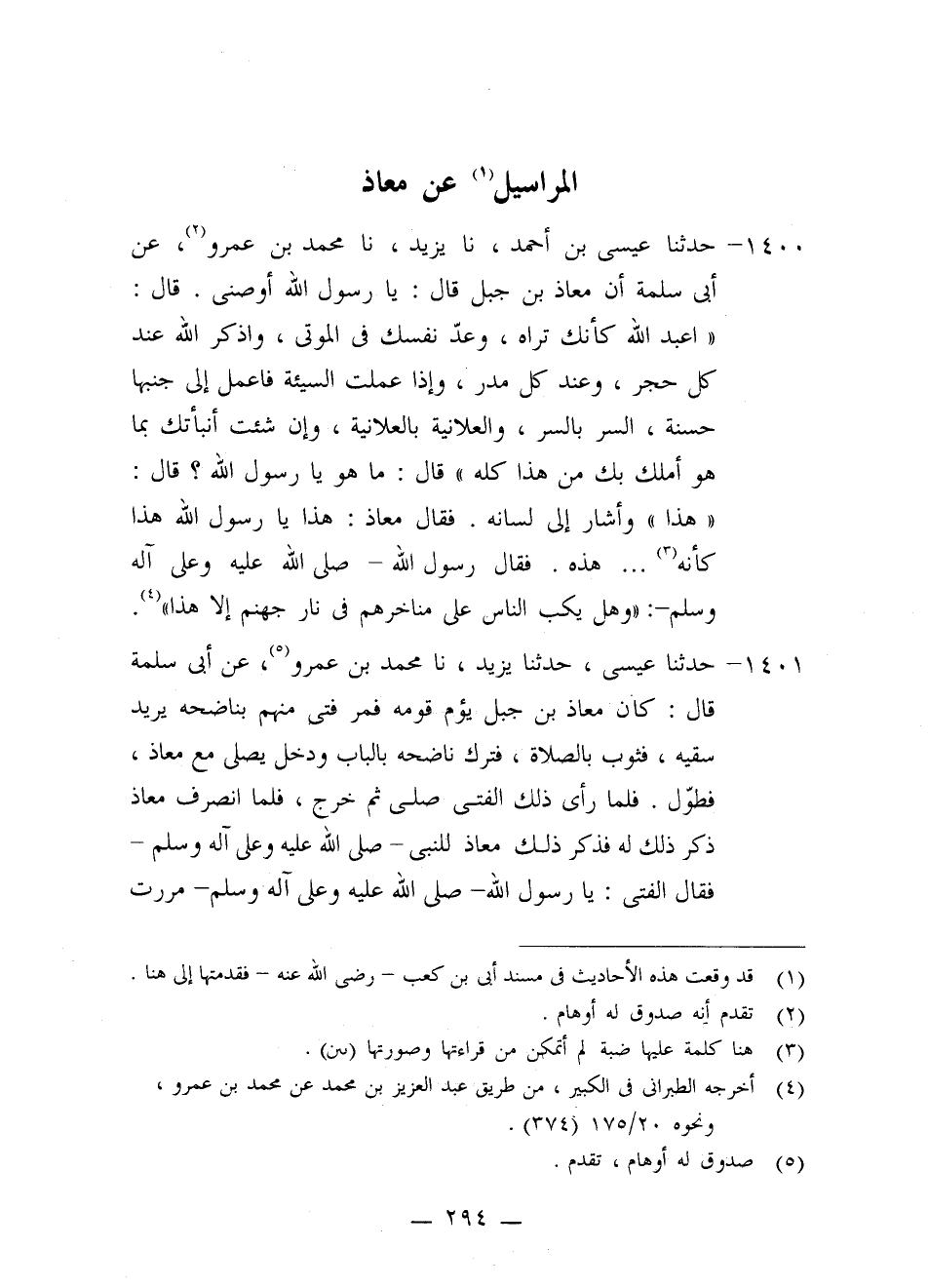 §الْمَرَاسِيلُ عَنْ مُعَاذٍ
