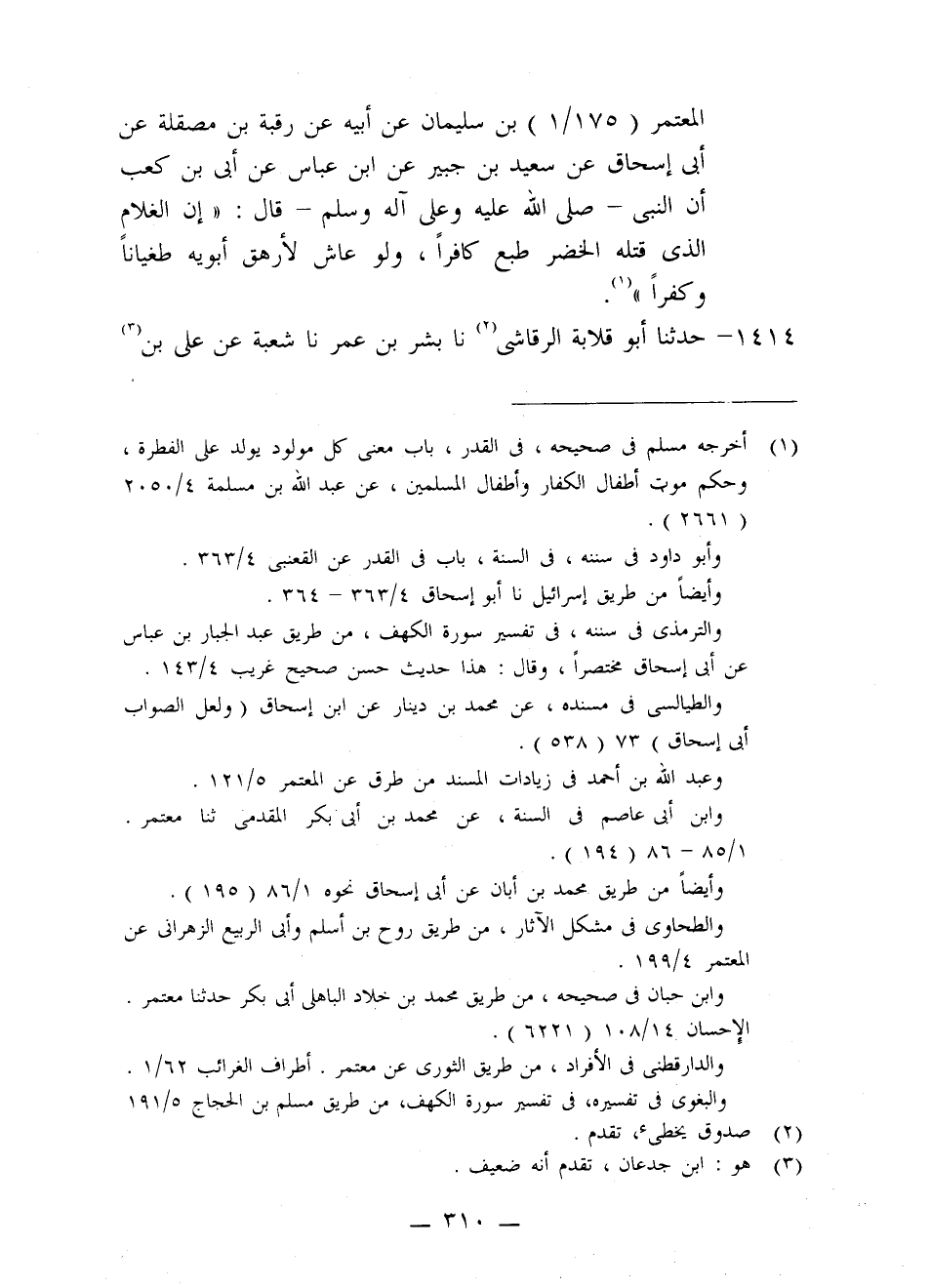 1414 - حَدَّثَنَا أَبُو قِلَابَةَ الرَّقَاشِيُّ، نا بِشْرُ بْنُ عُمَرَ، نا شُعْبَةُ، عَنْ عَلِيِّ بْنِ -[311]- زَيْدٍ، عَنْ يُوسُفَ، عَنِ ابْنِ عَبَّاسٍ، عَنْ أُبَيِّ بْنِ كَعْبٍ، قَالَ: " §آخِرُ سُورَةٍ نَزَلَتْ بَرَاءَةٌ وَآخِرُ آيَةٍ نَزَلَتْ {لَقَدْ جَاءَكُمْ رَسُولٌ مِنْ أَنْفُسِكُمْ} [التوبة: 128] "