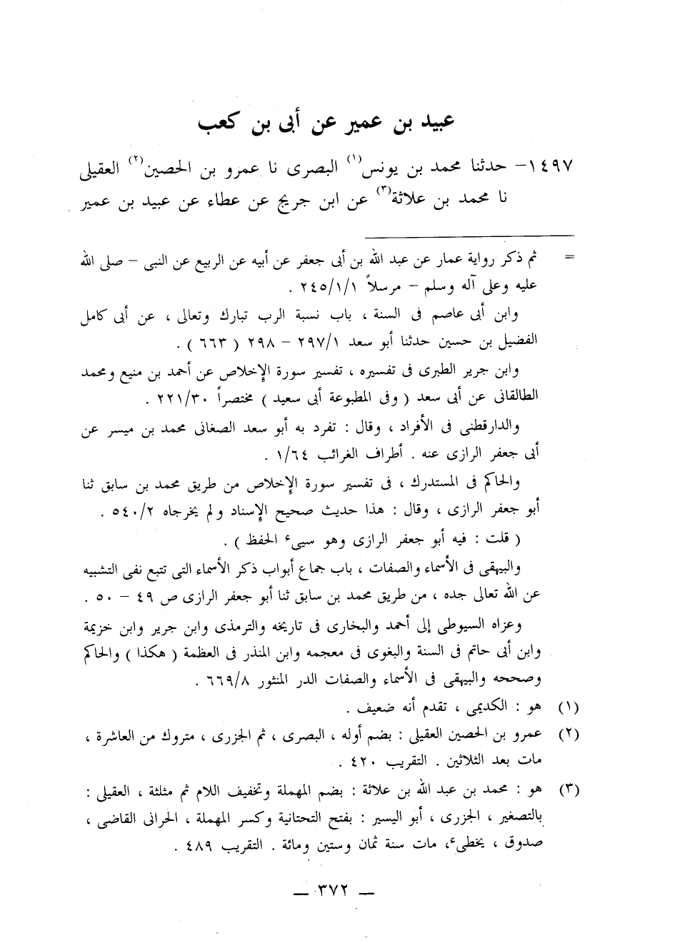 §عُبَيْدُ بْنُ عُمَيْرٍ عَنْ أُبَيِّ بْنِ كَعْبٍ