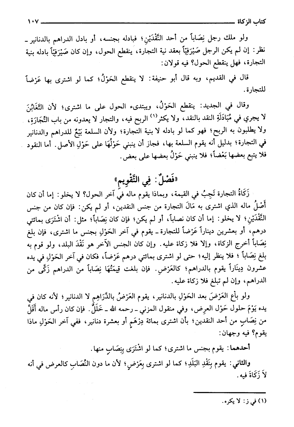 ولو باع العرض بعد الحول بالدنانير، يقوم العرض بالدراهم لا الدنانير؛ لأنه كان في يده يوم حلول حول العرض، وفي منقول المزني - رحمه الله - خلل. فإن كان رأس ماله أقل من نصاب من أحد النقدين؛ بأن اشترى بمائة درهم أو بعشرة دنانير، ففي آخر الحول ماذا يقوم؟ فيه وجهان: