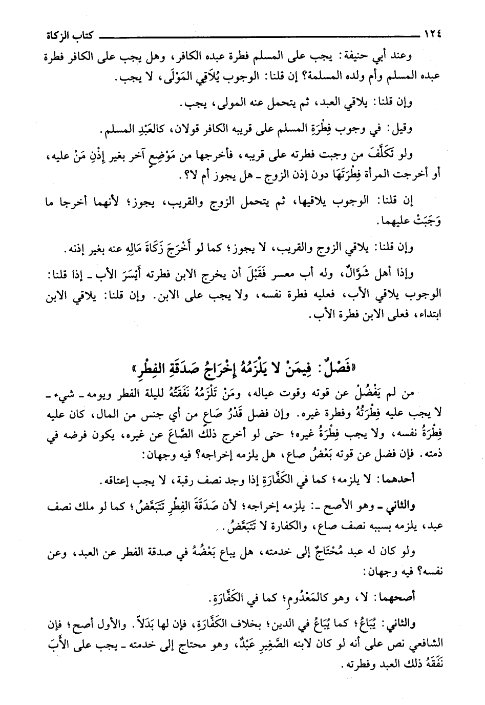 "فصلٌ: فيمن لا يلزمه إخراج صدقة الفطر"